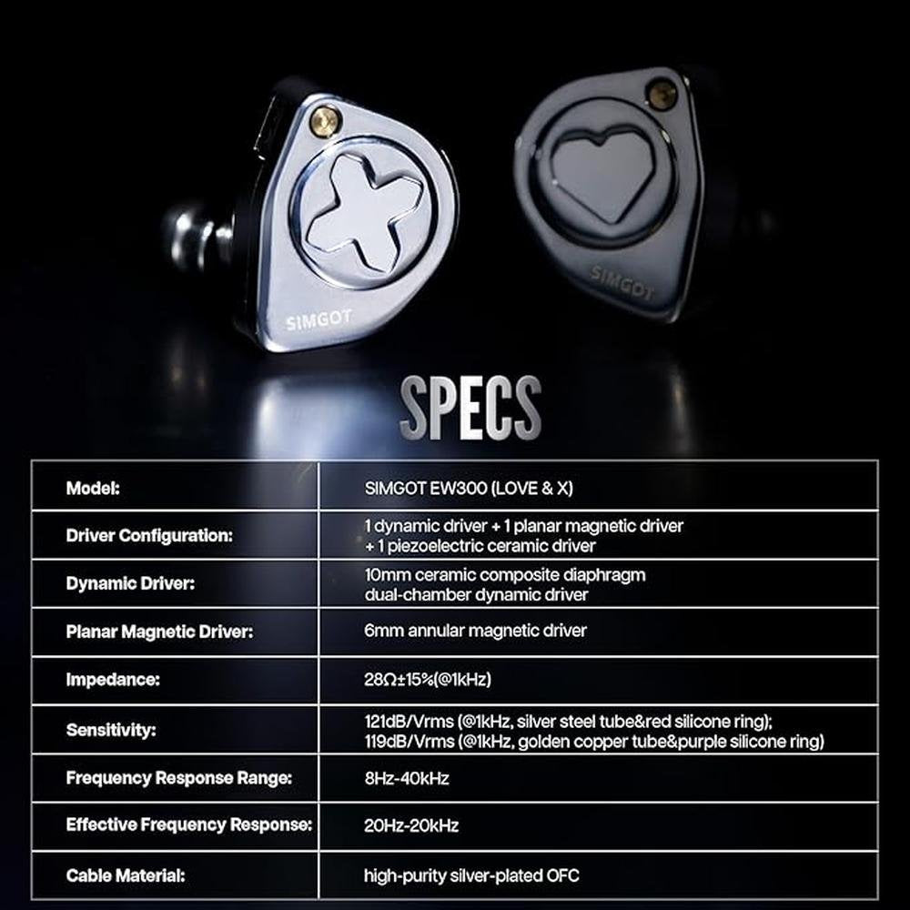 Linsoul SIMGOT EW300 1DD+1Planar+1PZT Hybrid Driver in Ear Monitor, Wired Earbuds IEM, Gaming Earbuds with Detachable Nozzles, Silver-Plated OFC IEM Cable for Audiophile Musician (Standard Edition)