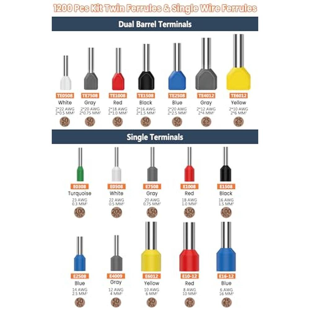- Wide AWG Range & Rich KitSupports 28-5 AWG (0.0816mm) with 1200PCS single & double ferrules in 17 sizes