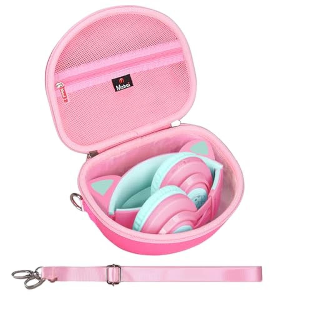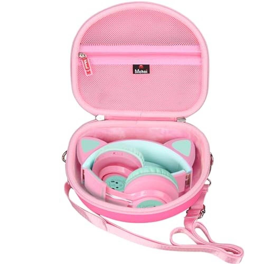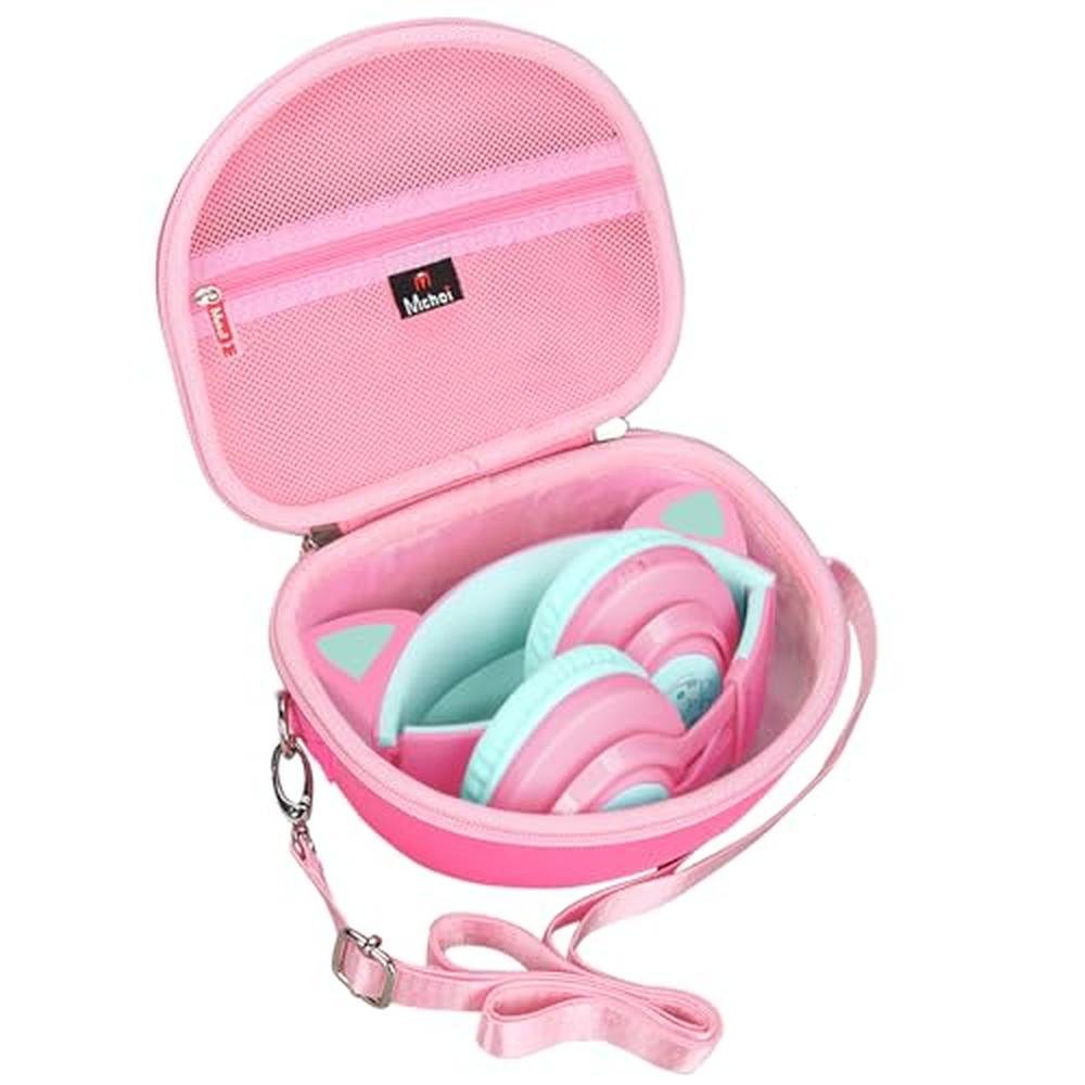 Mchoi Hard Case Suitable for Riwbox CT-7 Pink for Jack CT-7S Cat Green 3.5mm for iClever IC-HS01 Bluetooth Wireless Over-Ear Headphones Headset for Kids Travel Protective Case, Pink Case Only
