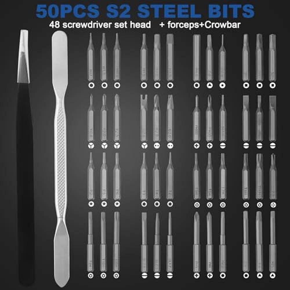 Mini Electric Screwdriver, 50 in 1 Precision Power Screwdriver Set, Cordless Pocket Screwdriver with 48 Magnetic Bits + 1 Pliers + 1 Bar for Repairing Eyeglasses Computer Laptop Watch