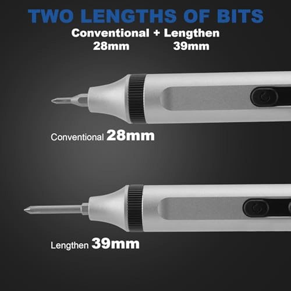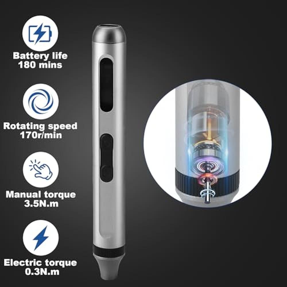 - 50 in 1 Electric Screwdriver: JKOKPMG mini electric screwdriver has 48 bits, 1 pliers, 1 lever. It solves various maintenance tasks for you. The top of the screwdriver is equipped with a shadowless lamp that provides clear lighting for your maintenance work.