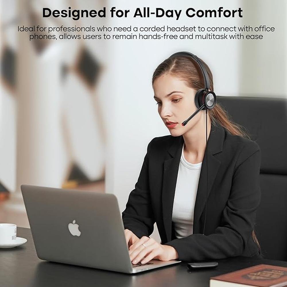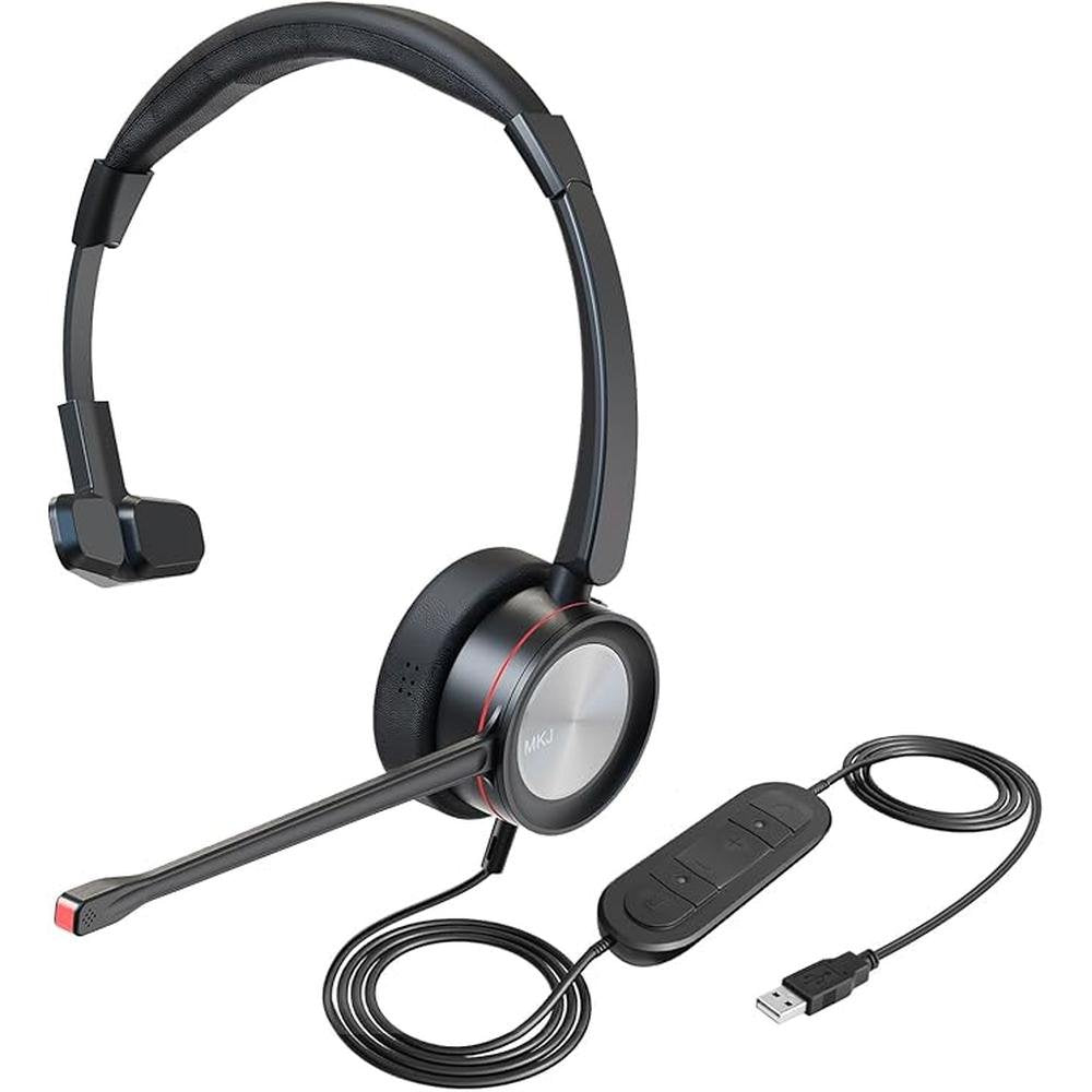 MKJ USB Headset with Microphone, Noise Canceling Wired Headphone for Call Center, Office Headset for PC, Computer, Laptop, Work with Ms Teams, Zoom, Webex, Conference, Black