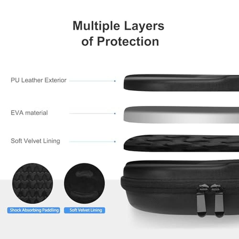- Made of durable EVA material with PU leather exterior, shockproof, dustproof and waterproof. Soft velvet filled interior can prevent your stuff from shock, scratches and bumps.