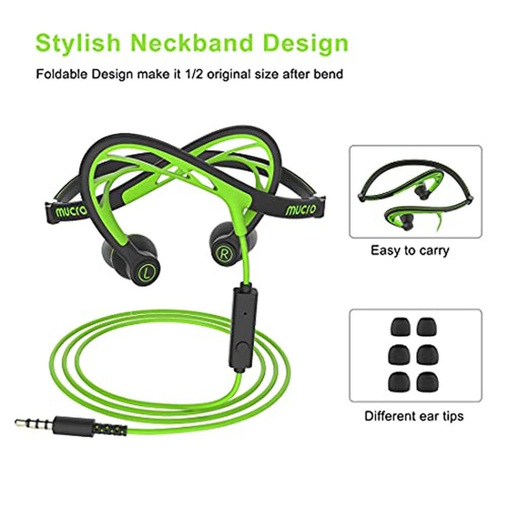 - Born for Sports Ergonomic neck design allows the weight of the headset to be evenly distributed around the neck. Fit for running, walking, jogging, weight lifting, gym training, etc.Mucro around the neck headphones are incredibly lightweight no need to stop your workout to adjust the ear buds any more, and do not get tangled or in the way of your workout