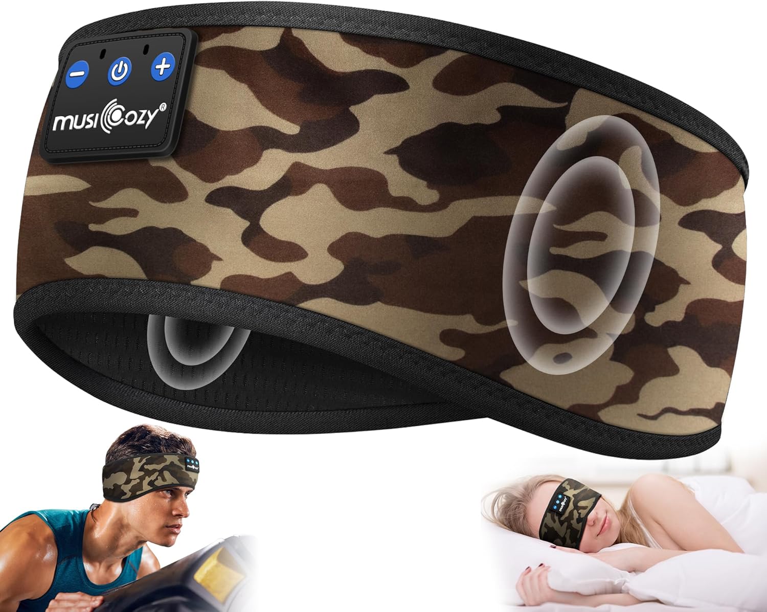 MUSICOZY Sleep Headphones Bluetooth 5.4 Headband, Sports Wireless Earphones Sweat Resistant Earbuds Sleeping Headphone with Ultra-Thin HD Stereo Speaker for Workout Running Cool Gadgets