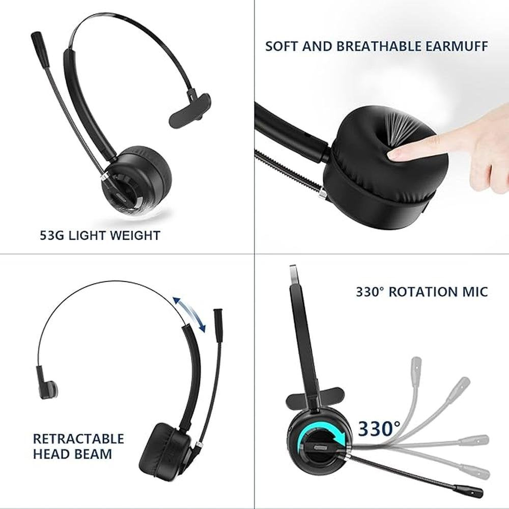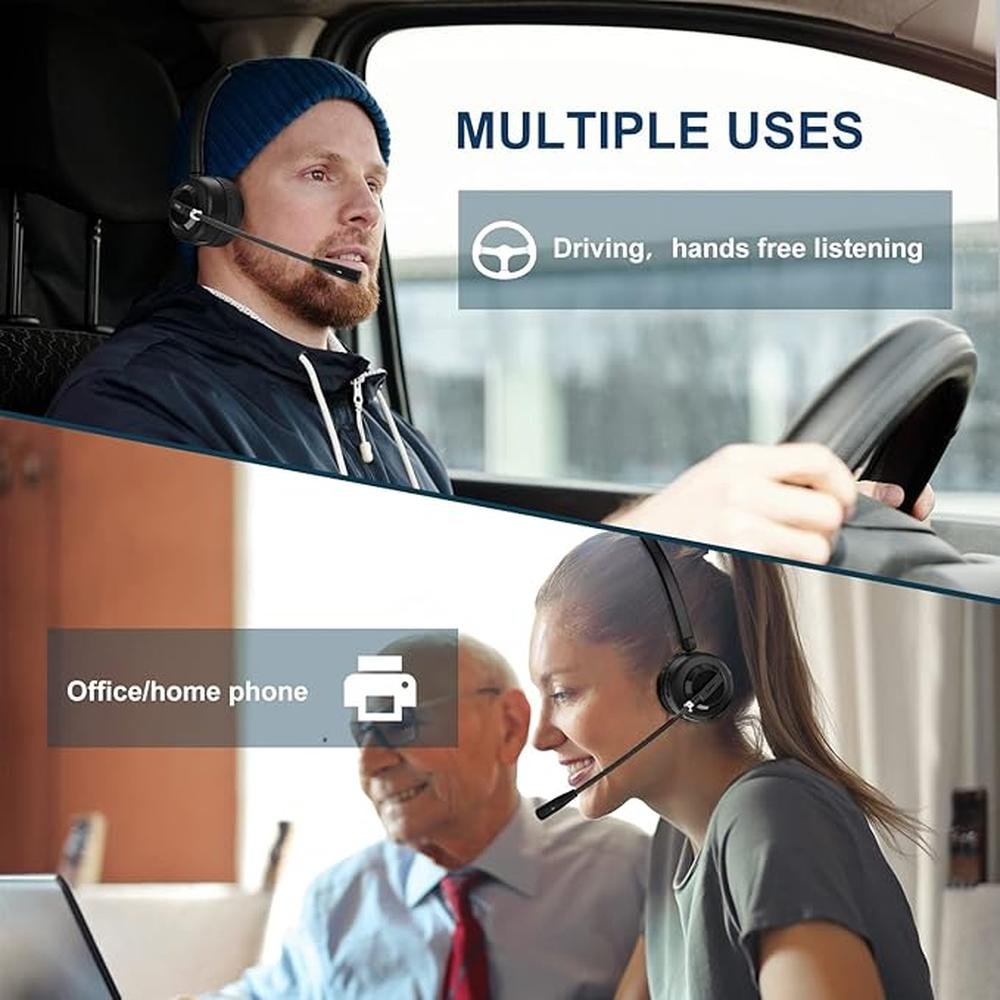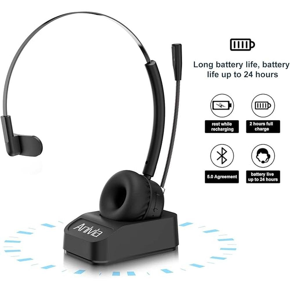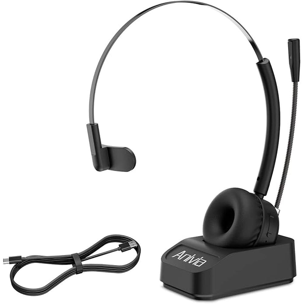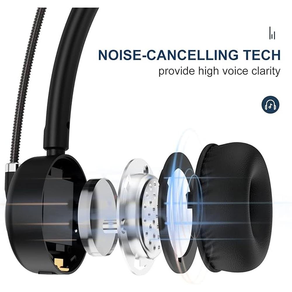 Nightroad Computer Headset with Wireless Charging Base Noise-Cancelling Microphone for Call Centers or Truck Driver Headset