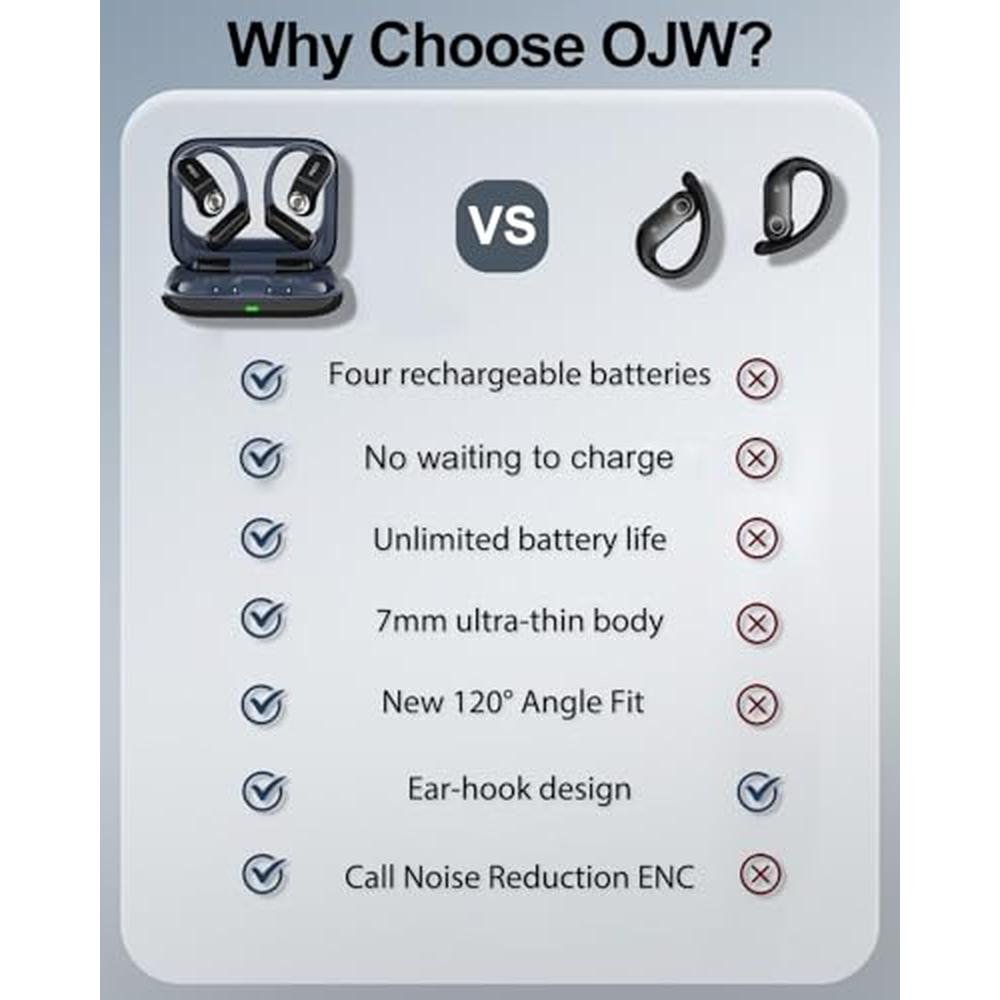 OJW Open Ear Headphones, Unlimited Power Earphones with Case & Replaceable Battery, OWS Bluetooth 5.4 Wireless Headphone with Mic, IPX7 Waterproof Headset for Sports, Compatible with iPhone & Android