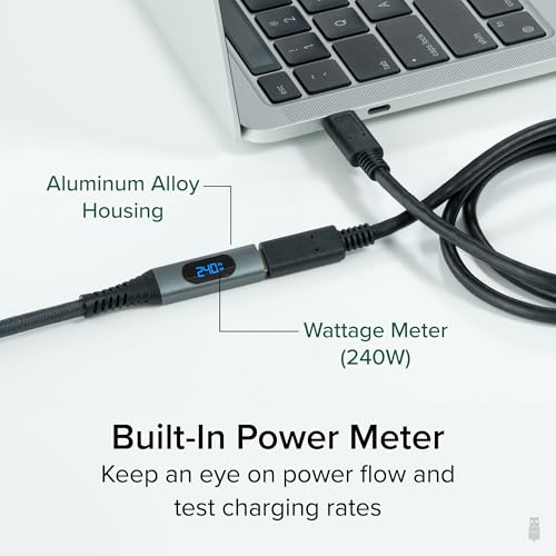 Digital Tester | Plugable USB-C Extension Cable 3.3ft with Digital Power Meter Tester | 240W Fast Charging