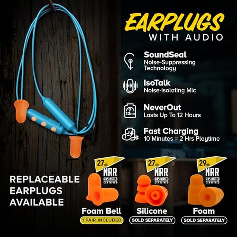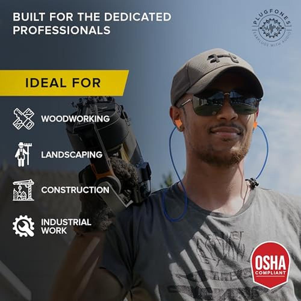 - 27dB NRR EARPLUG HEADPHONES NOISE-REDUCING WIRELESS EARBUDS WITH MIC: Plugfones Basic Pro combines safety-rated ear plugs with custom-tuned speakers to deliver rich sound and crystal-clear calls. These work earbuds double as ear protection, offering powerful noise reduction with an IsoTalk noise-isolating mic ideal for job sites, workshops, and more.