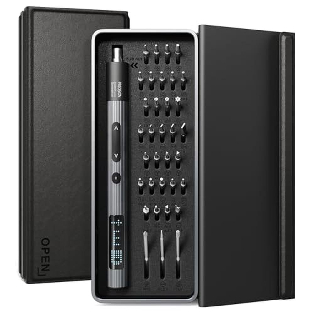 Precision Electric Screwdriver Set with LED Screen, 36 in 1 Mini Rechargeable Battery Power Repair Tool Kit with 0.3N.m, Leather Aluminum Case, Micro Cordless Automatic Screw Driver for iphone PC DIY