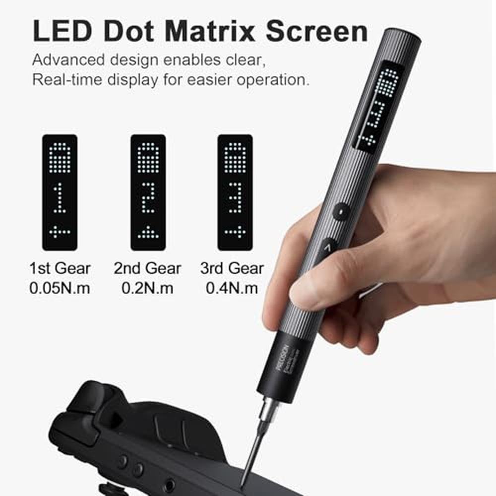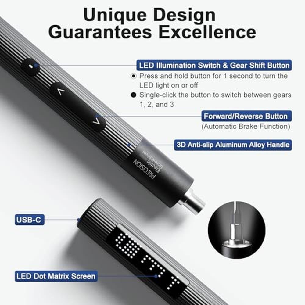 • 3D Anti-slip Aluminum Alloy Handle: The power screwdriver handle is ergonomic and Made of aircraft aluminum.The handle has an anti-slip texture to make it more graspable and controllable, it will not slip in your hand when torque is applied. What truly sets this mini electric screw driver apart is its thoughtfulness. It is loaded with small but impactful features like LED lights, which help you work better in low-light conditions.