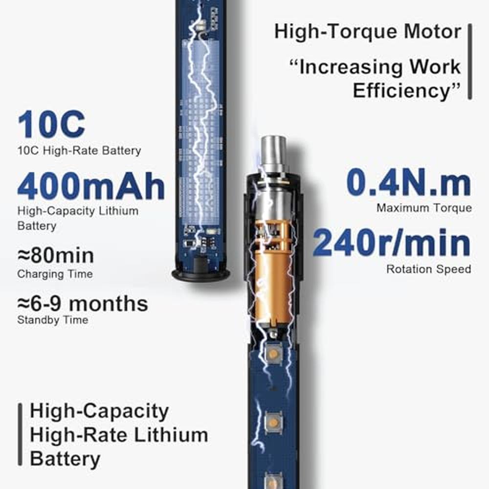 • Small Screwdriver with Rechargeable Battery Operated: Cordless precision power screw driver set build in 400Mah battery, it's fully will automatically cut off the electricity to protect the battery. The micro motor driver has a speed of 240R/min, maximum torque 0.3N.m, save time and effort during the maintenance process, you don't need to make many movements trying to fasten tiny screws. If you work with small devices, a tool like Rechargeable electric screwdriver is a must.