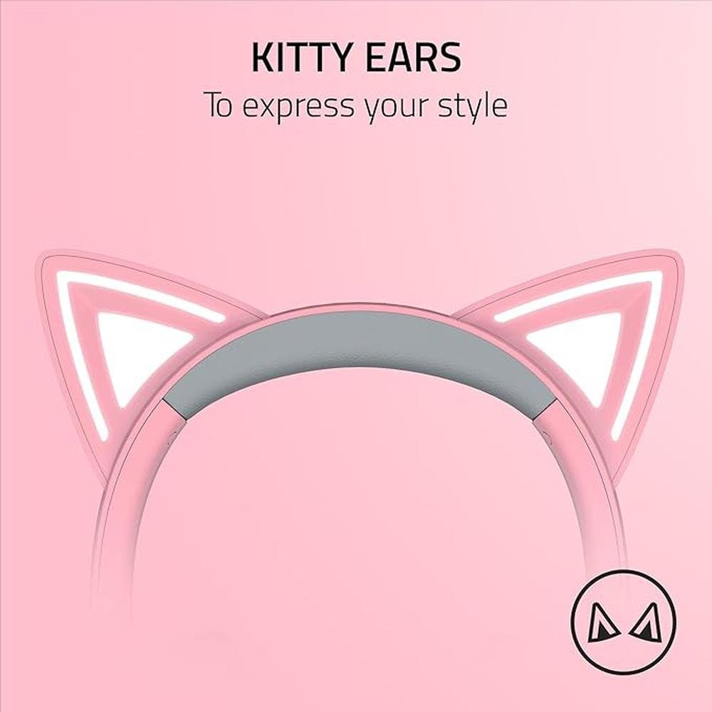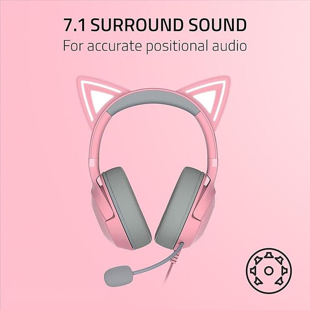 Razer Kraken Kitty V2 USB Wired Headset: Chroma RGB Kitty Ears - Stream Reactive Lighting - HyperClear Cardioid Mic - 40 mm Drivers - 7.1 Surround Sound - Comfortable Ear Cushions - Quartz Pink