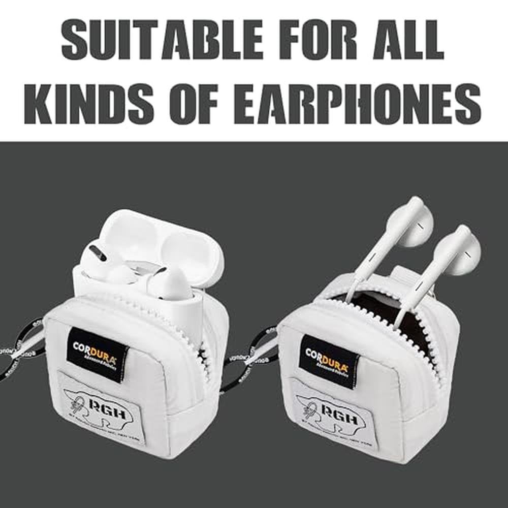 Rough Enough Earbud Case Pouch Headphone Storage Bag with Lanyard Neck Keychain for Earphone Earbuds Wireless Bluetooth White