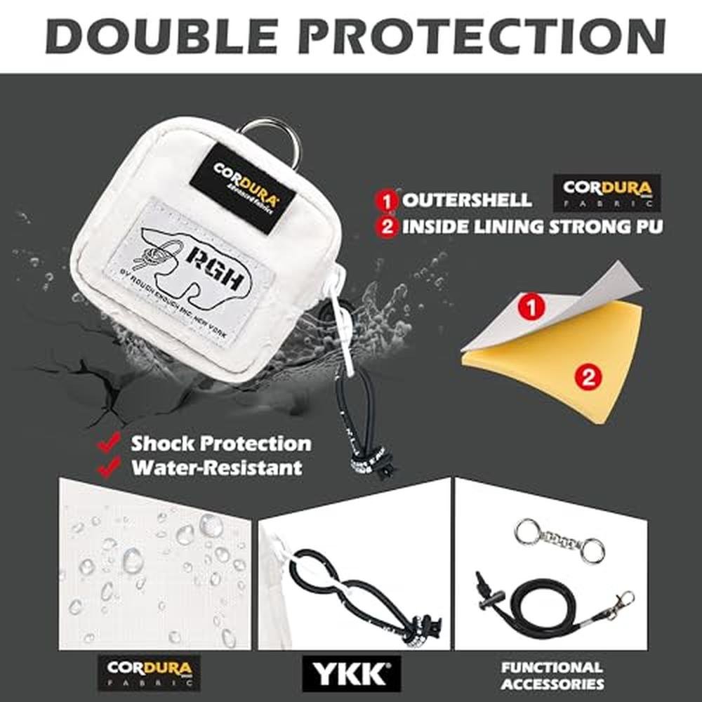 • Compact Portability Measuring 2.5 x 2 x 2.8 inches, the Rough Enough earbud case pouch includes a neck lanyard and keychain for easy attachment to bags during travel, gym, or outdoor activities