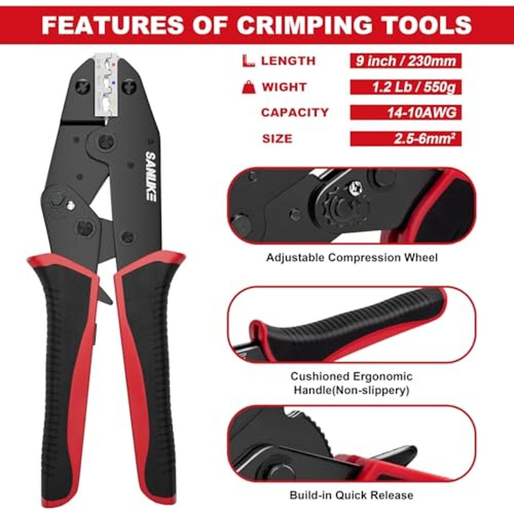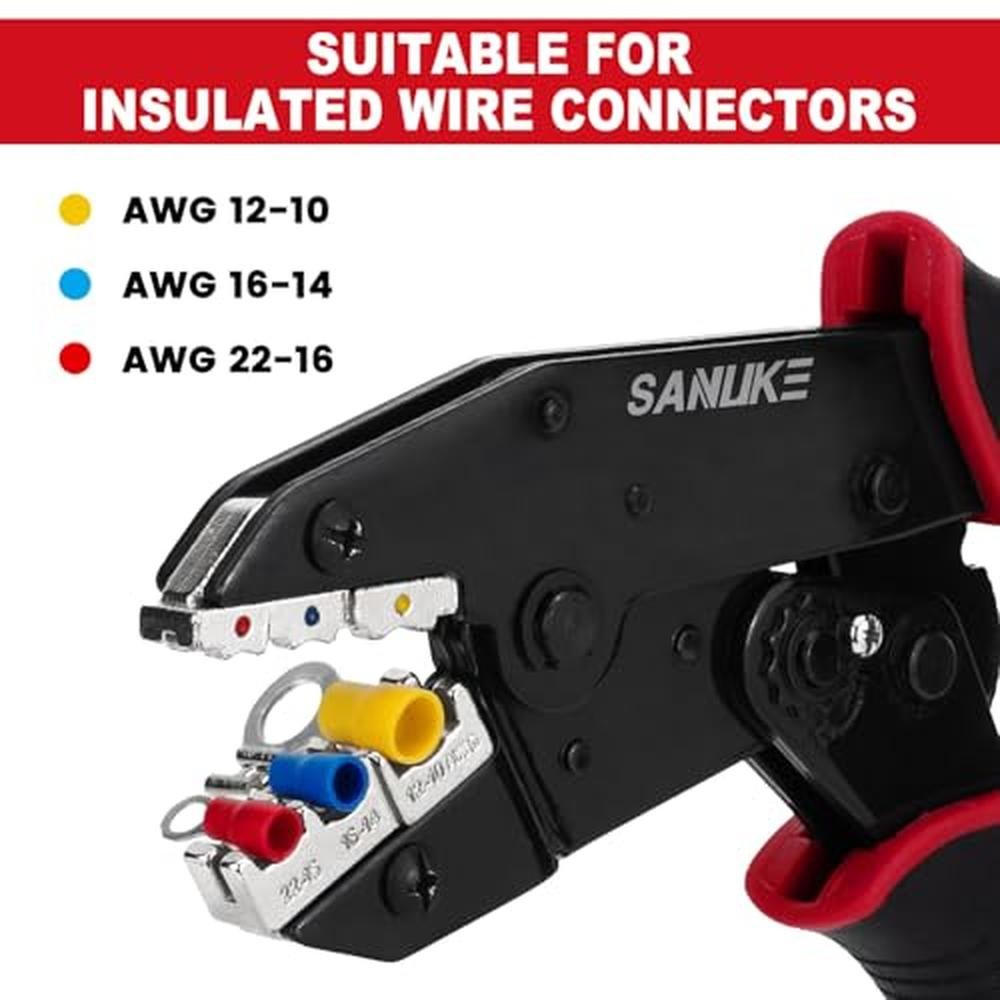 Sanuke Crimping Tool For Insulated Wire Connectors-AWG 22-10 Ratcheting Wire Crimper-Crimping Pliers-Electrical Crimping Tool for Insulated Connectors and Wire Terminal