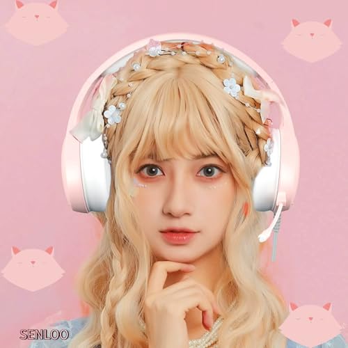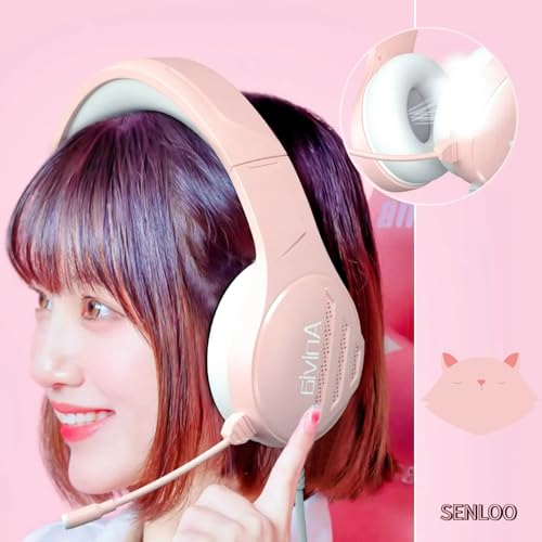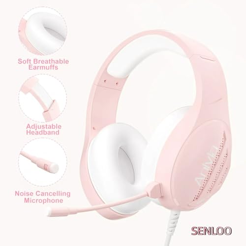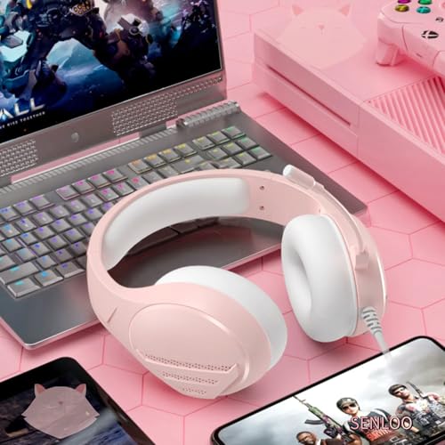 SENLOO Pink Gaming Headset | Wired Over-Ear Headphones with Microphone for Girls and Women | Immersive Sound and Stylish Design