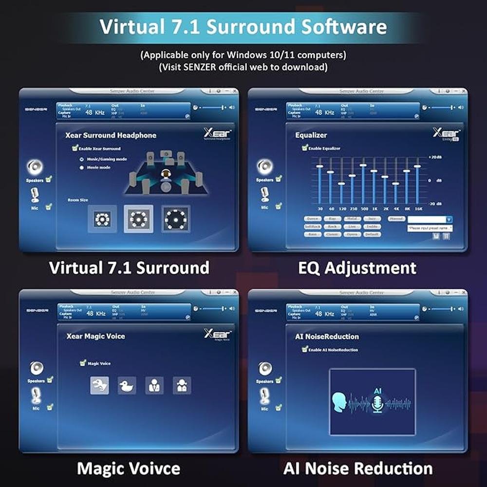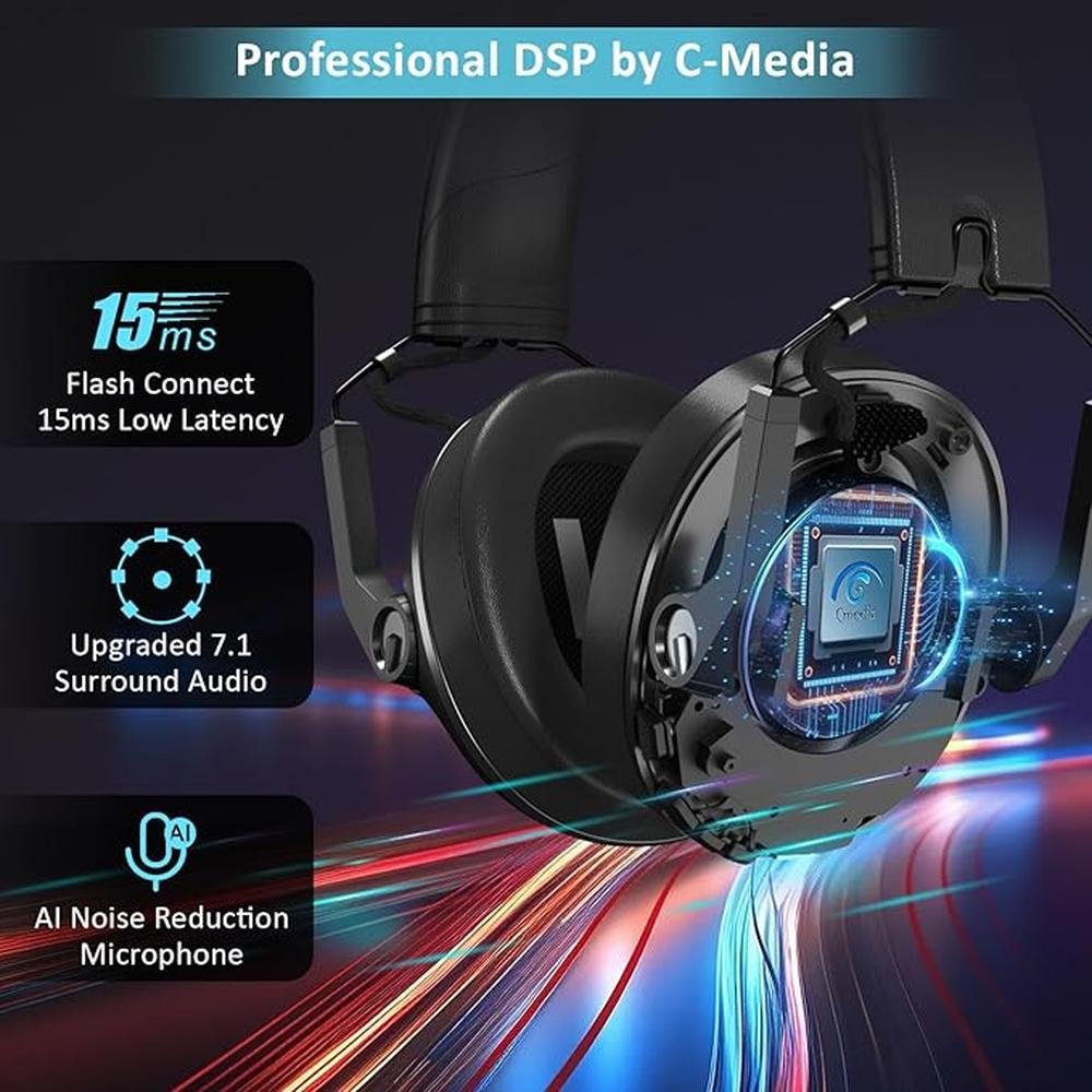 SENZER SG600 Pro Wireless Gaming Headset with Microphone - 7.1 Surround Sound, Noise Canceling Mic, 2.4GHz Wireless & Bluetooth 5.3 - Foldable Gaming Headphones for PC PS5 PS4 (Not Xbox Compatible)