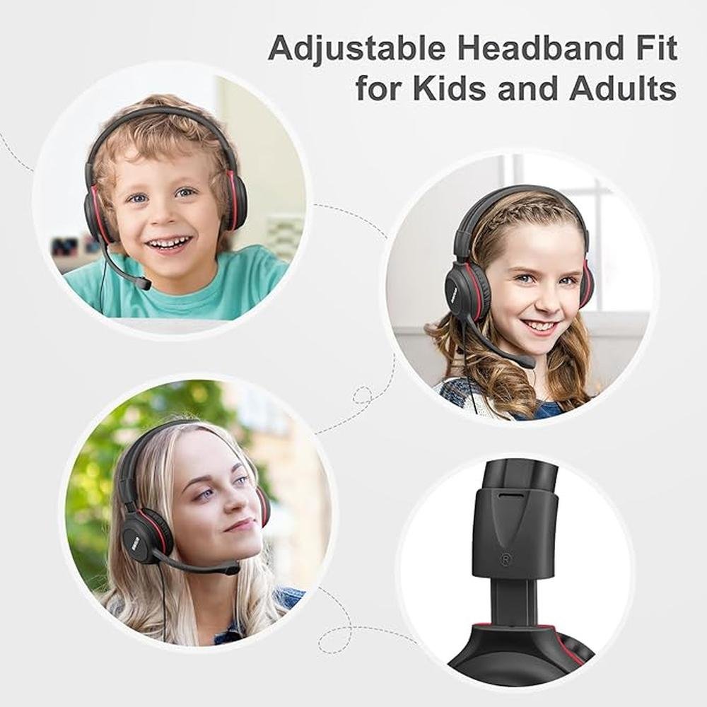 SIMOLIO Headphones Wired Kids with Boom Microphone for School & Meeting & Gaming, 3 Levels Hearing Protection Headphones with Mic for Boys, Girls, Children, Teens, Stereo Durable Headsets for iPad, PC