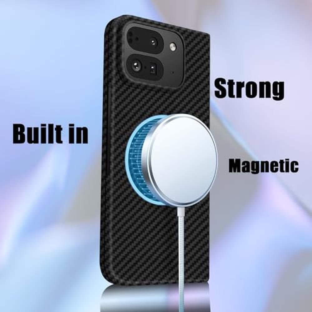 Slim Carbon Fiber Case for Google Pixel 9 Pro Fold, 1500D Aramid Fiber Thin Cover Supports Wireless Charging for Men and Women, Matte Black