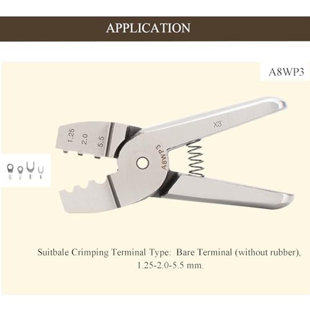 - SPECIFICATIONSSuitbale Crimping Terminal Type: Bare Terminal (without rubber), 1.25-2.0-5.5 mm.