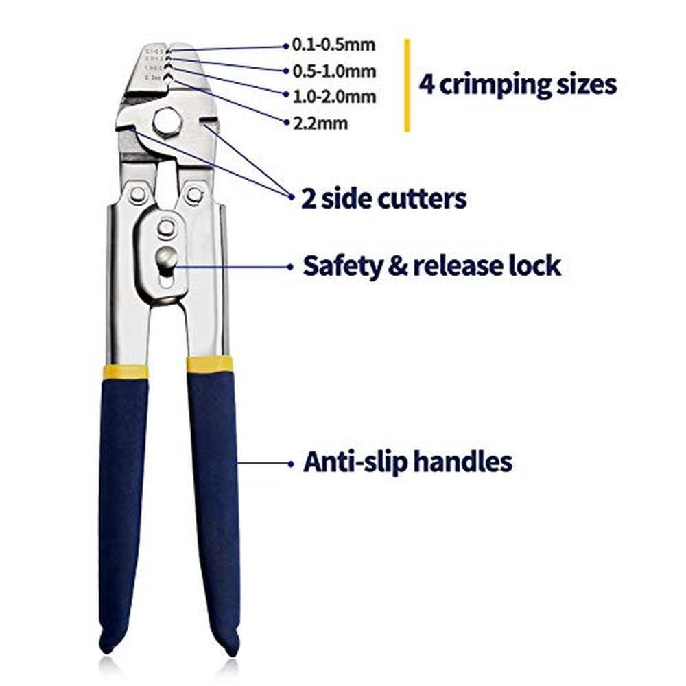 SPEEDWOX 10" Fishing Crimping Pliers Steel Wire Rope Crimping Tool with Cutter Wire Crimper Stainless Steel Fishing Crimping Tool for Small Fishing Line Aluminum Sleeves(0.1mm-2.2mm)