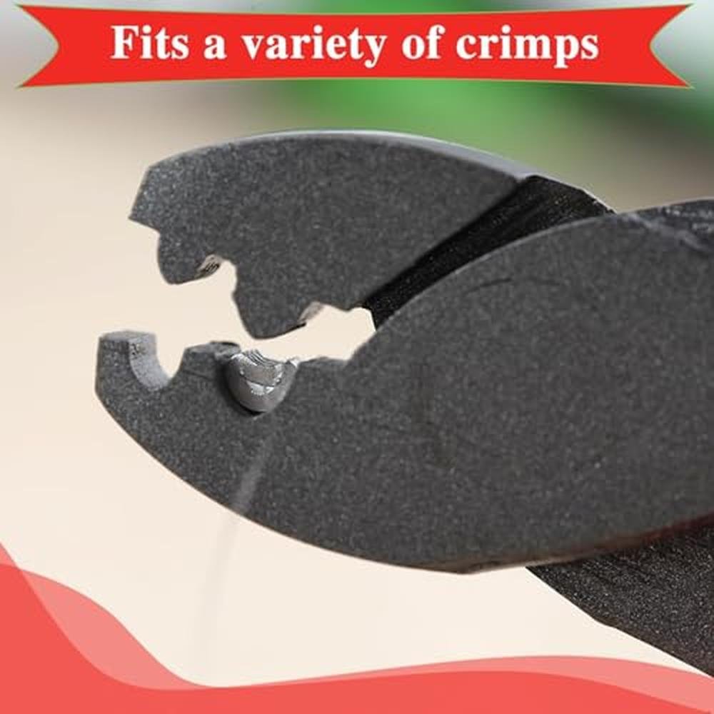 • APPLICATIONFits a variety of crimps. Ideal crimping pliers mainly used for #0-#6 single barrel sleeves size Round Hole Type: 1.0mm-2.0mmOblate Hole Type: 1.0mm-2.5mm.