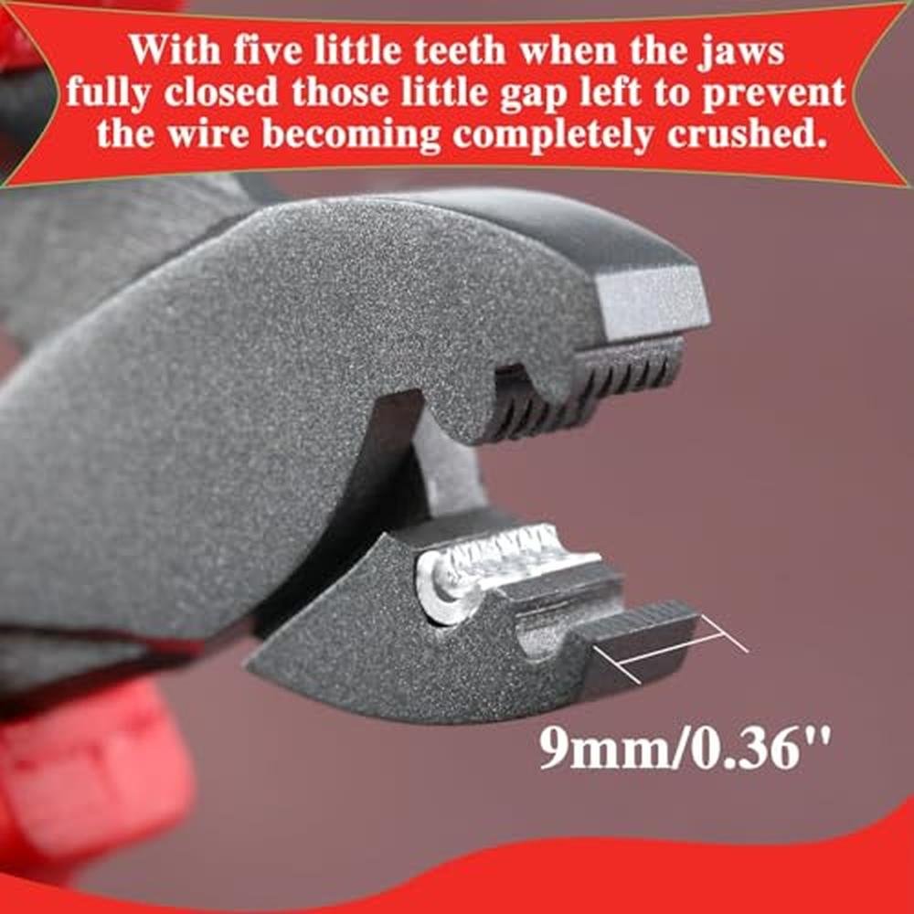 • DESIGNOur crimping tool with five little teeth that individual pressure points on the crimp and also even when the jaws fully closed those little gap left to prevent the wire becoming completely crushed. With the anti-loss lanyard you can ensure that there will be no accidental release when in use.