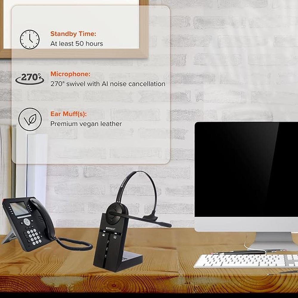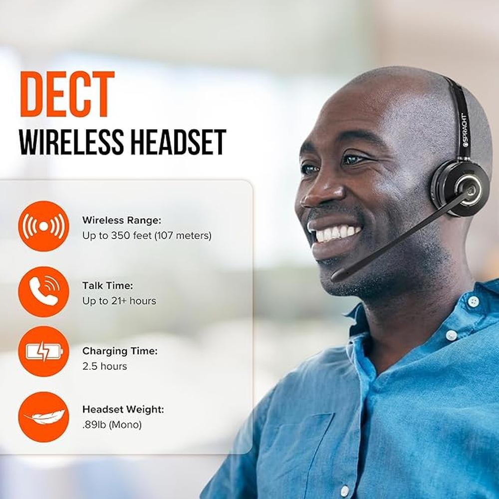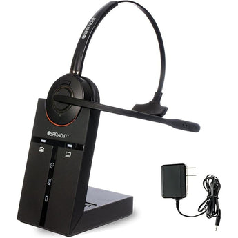 Spracht HS-2020 Single Ear Wireless Headset | USB/DECT Combo Headset with Mic - Noise Cancelling Headphones | Compatible with Desk Phone, PC, and Mac Computer via USB