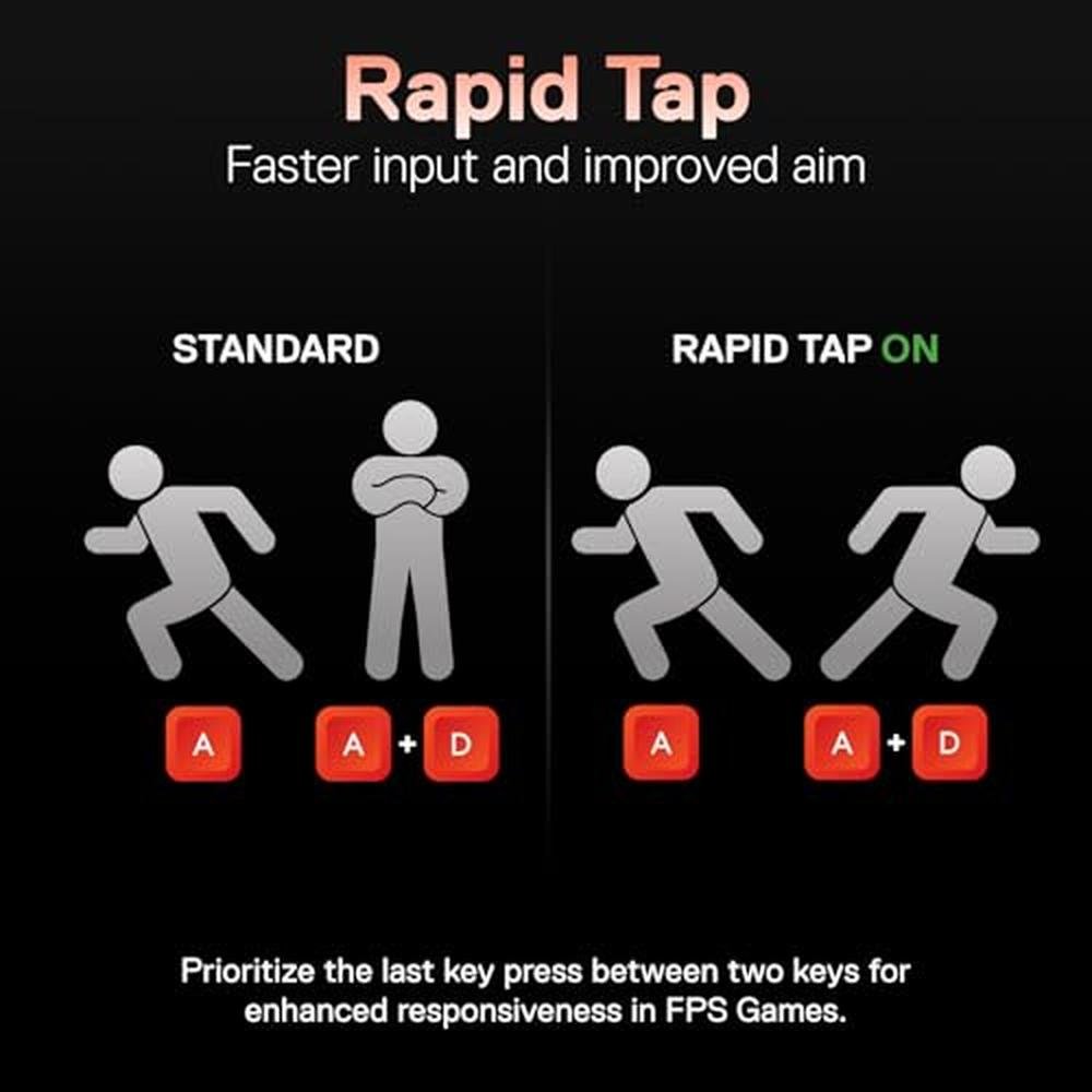 - RAPID TRIGGER Eradicate latency arising from the physical movement of the switch through dynamic activation and deactivation of keys based on travel distance rather than a fixed point in the key travel