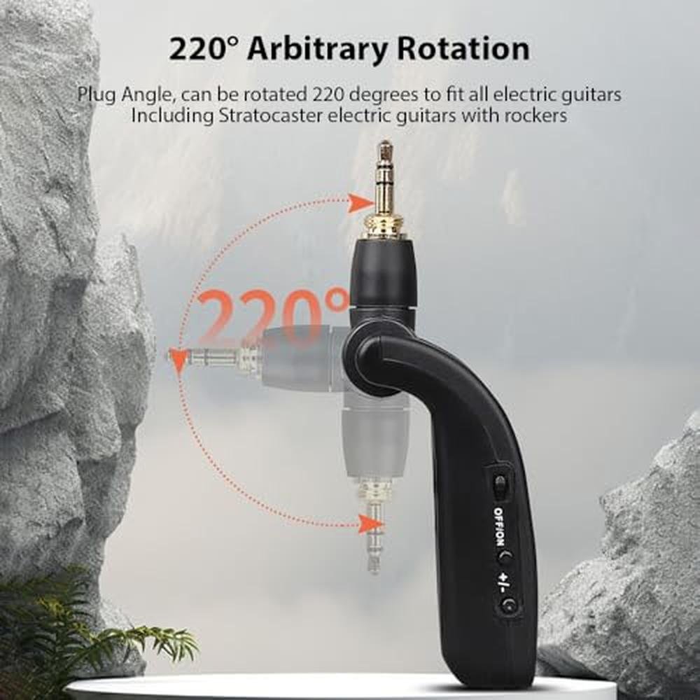 - User-Friendly Design: This wireless guitar transmitter receiver features a 220 rotatable plug, making it adaptable for all electric guitars, including Stratocaster-style models with whammy bars, ensuring convenience in every performance.