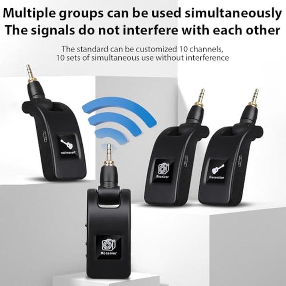 - Multi-Device Compatibility: Our guitar wireless system supports simultaneous use across multiple devices without interference. With dual 6.5mm/3.5mm plugs, it is compatible with electric guitars, basses, flutes, violins, electronic drums, and other electric instruments.