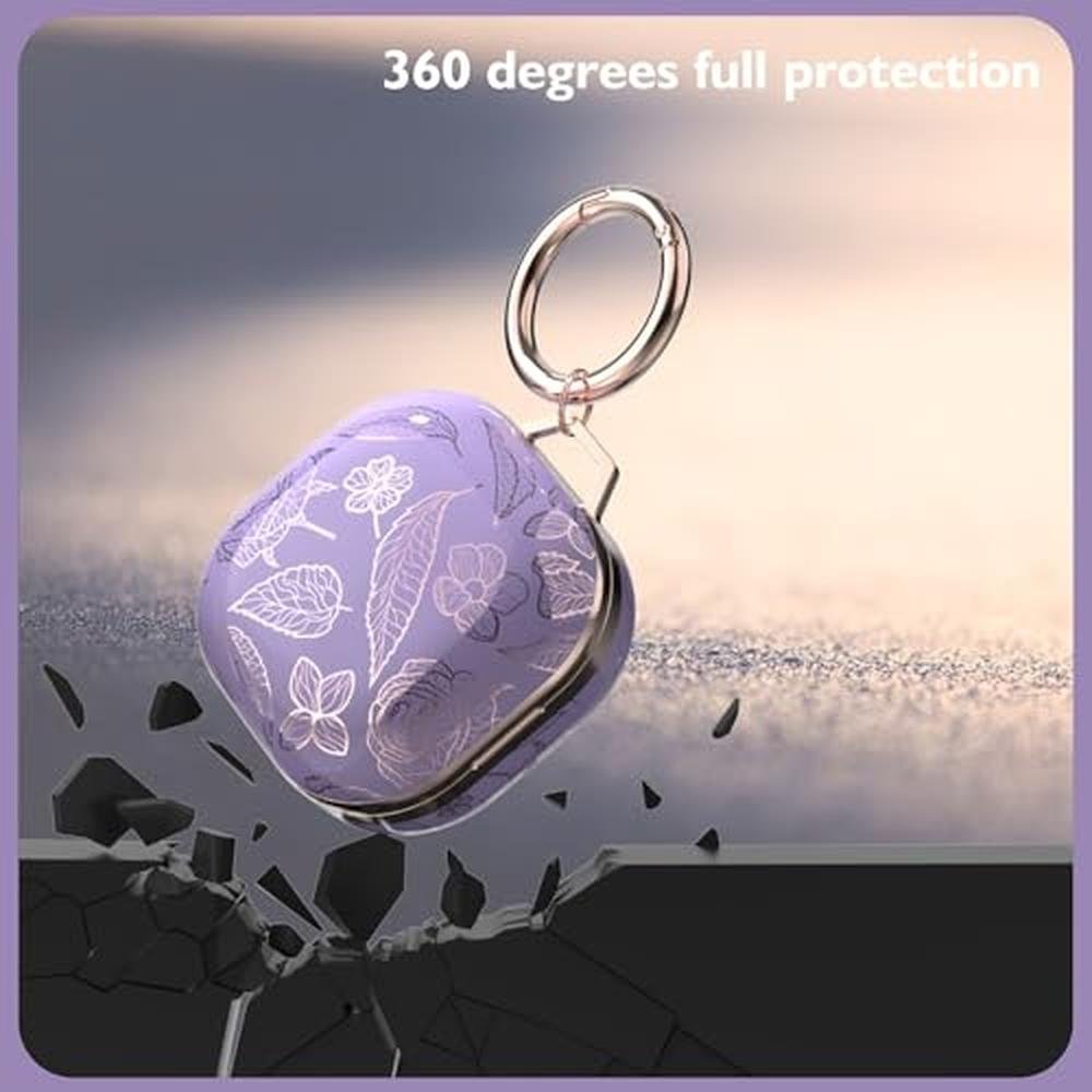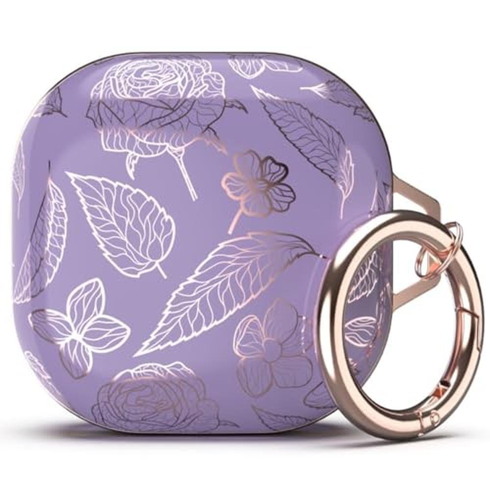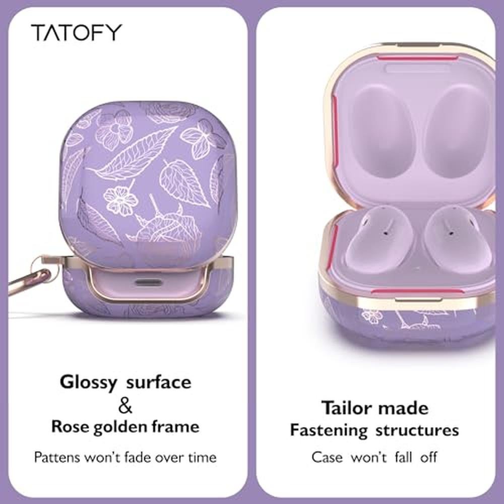 Tatify Case for Galaxy Buds - Pro, Live 2 Series, Golden Leaf Hard Case with Carabiner, Supports Wireless Charging (Purple Golden)