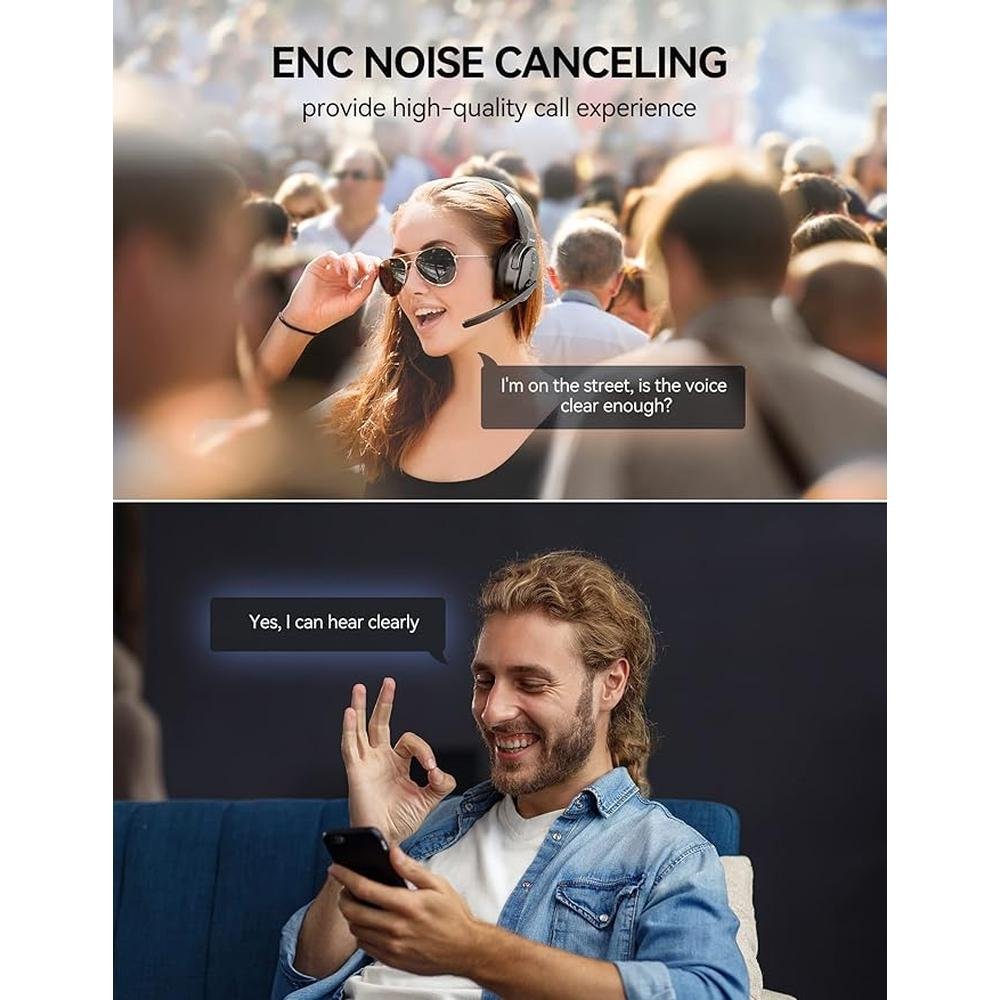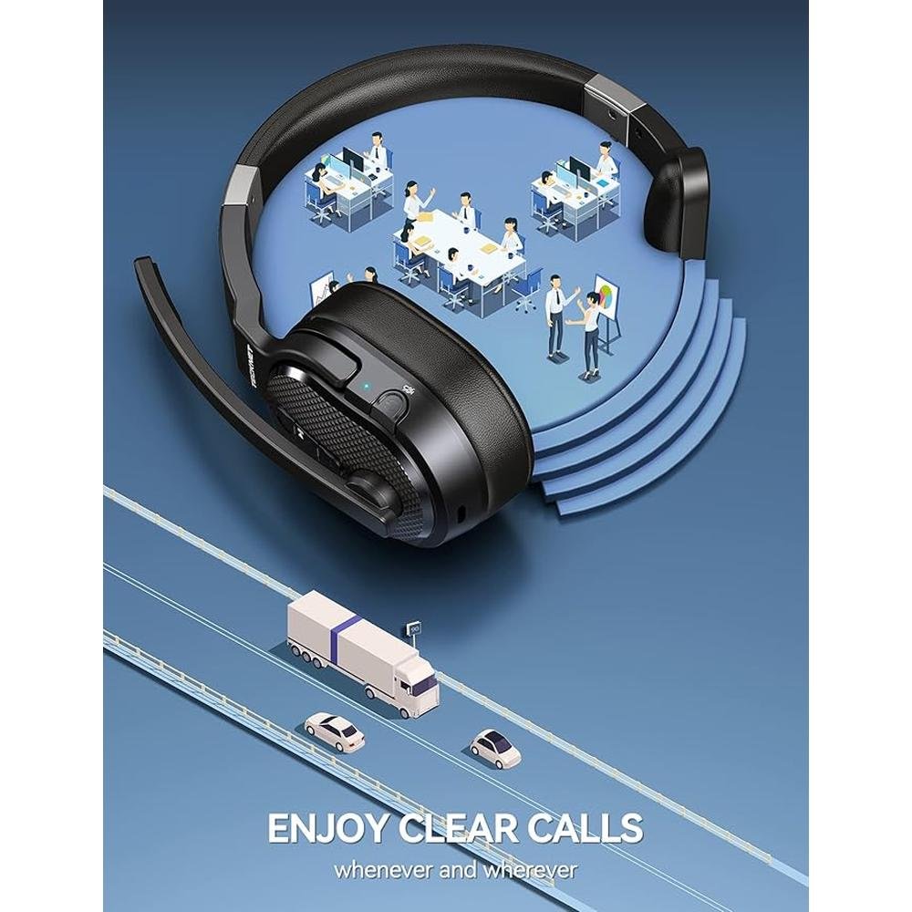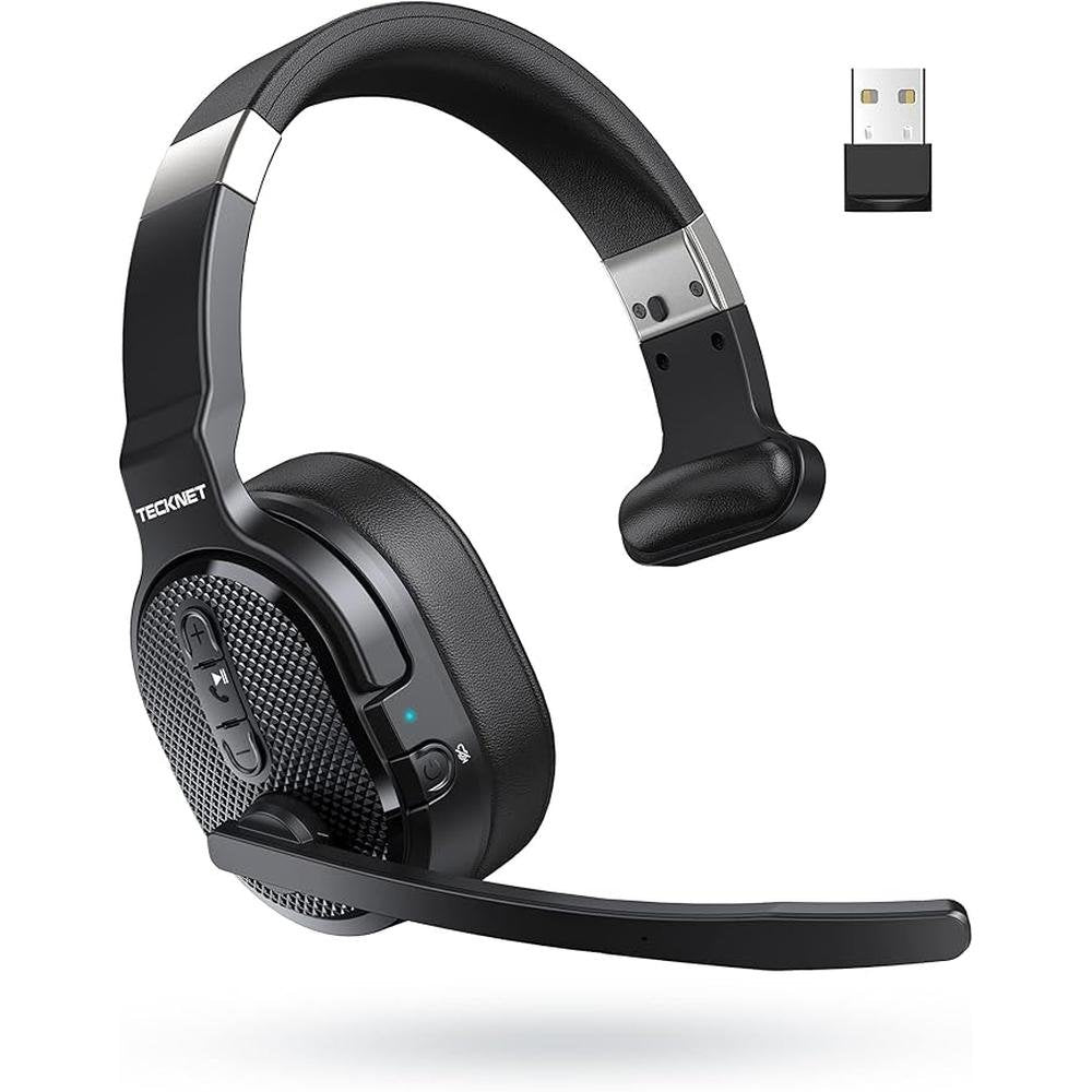 TECKNET Trucker Bluetooth Headset, AI Noise Canceling 70h Wireless Headphones Bluetooth with Microphone & Dongle, ENC Headset with Mute for PC Phone Laptop Office Home, All Day Comfort