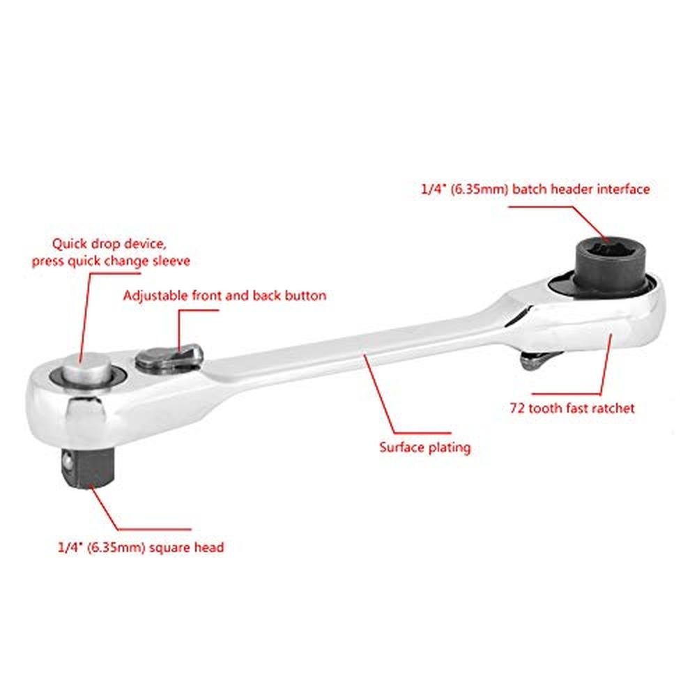 Terisass 1/4" Mini Socket Wrench, Hex Wrench, 72 Teeth Drive, Silver, Chrome Vanadium Steel