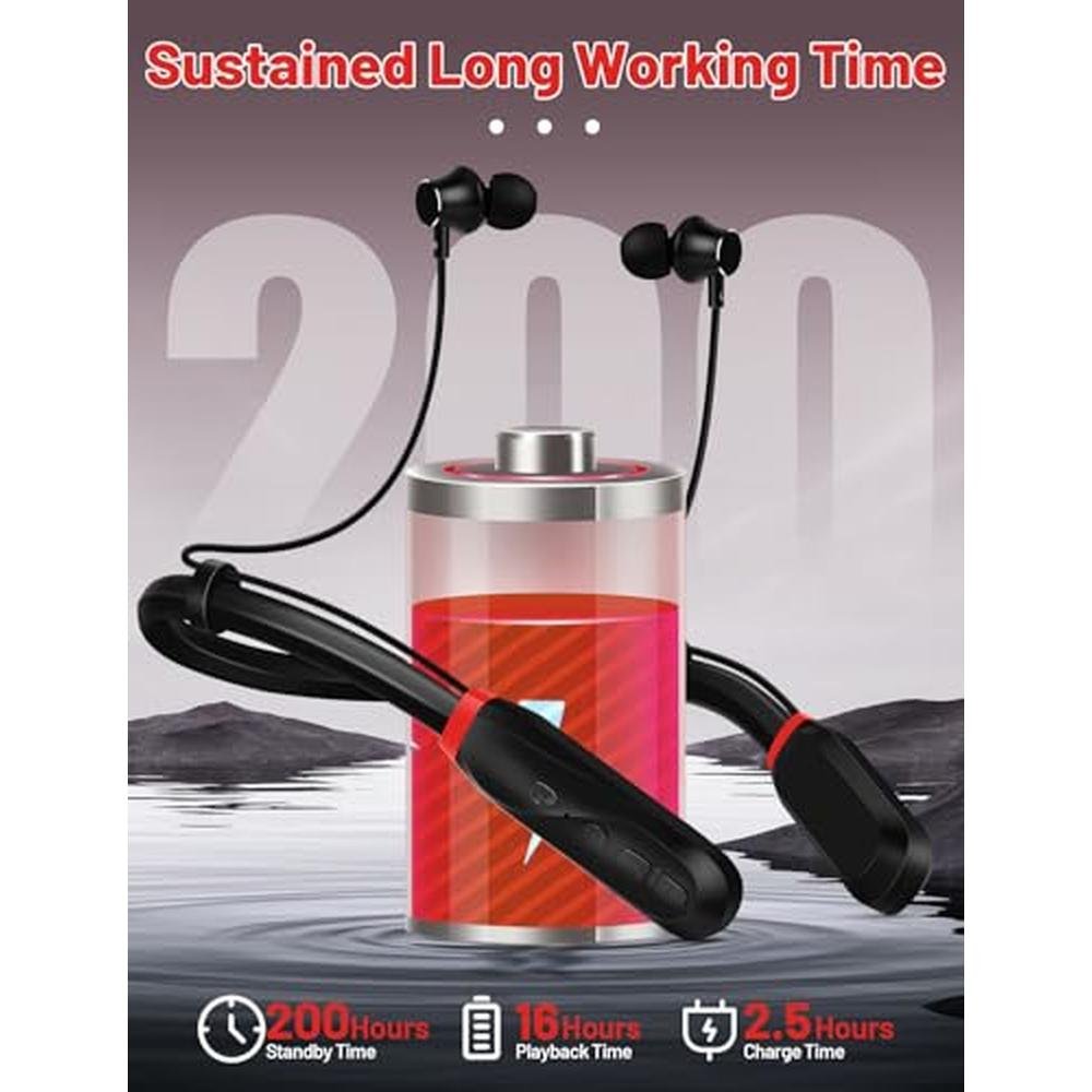 TERUBIN Neckband Bluetooth Headphones, 200H Long Playtime Wireless Stereo Neckband Earbuds with Microphone, Waterproof Around The Neck Headphones in Ear Headset for Sports/Workout/Office (Black)
