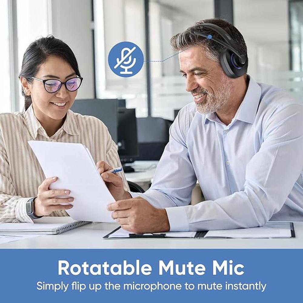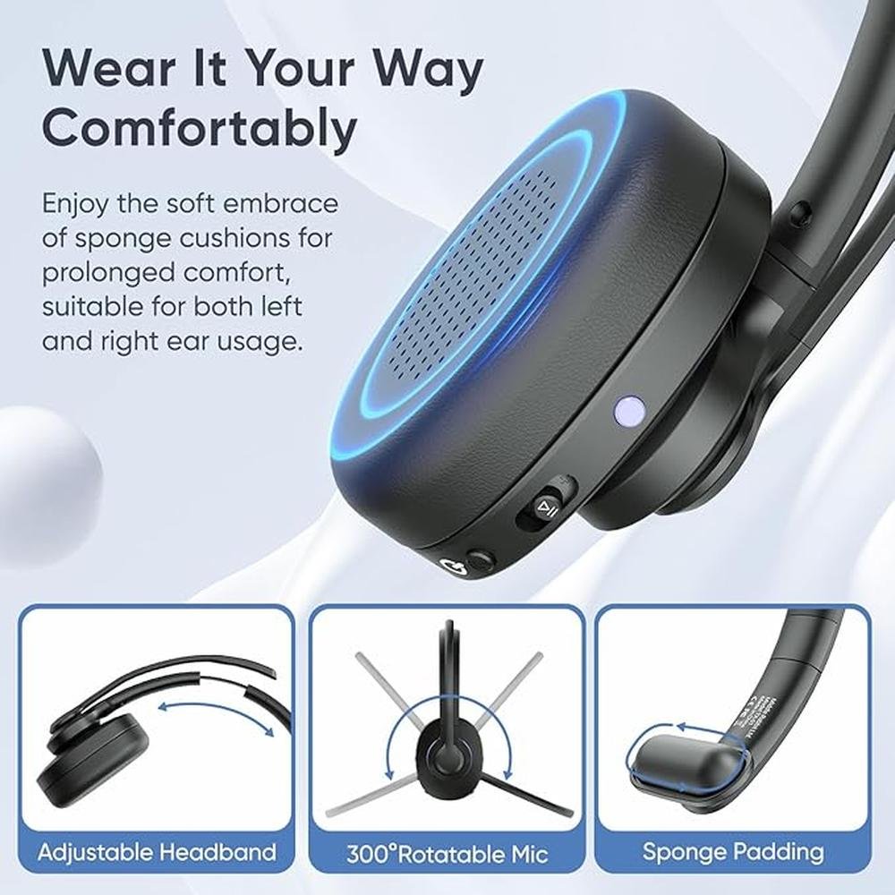 TK01 Wireless Headset with Mic for Work, Bluetooth On Ear Headphones with Noise Cancelling Microphone, Single Ear Headphones for Computer Laptop PC, for Office Call Center