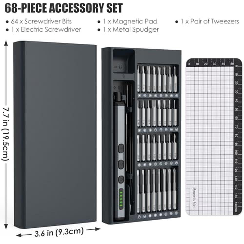Tomorotec 68-Piece Mini Precision Electric Screwdriver Kit: S2 Steel Bits, Adjustable Torque, OLED Display & Rechargeable Battery for Electronics, Gadgets and More - Effortless Repairs and Maintenance