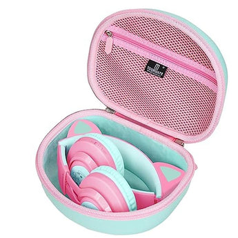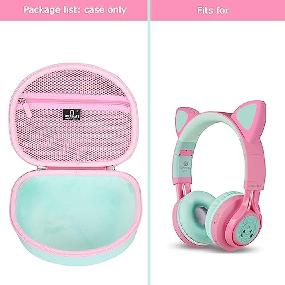 Tourmate Hard Travel Case for Riwbox CT-7 CT-7S iClever HS01 FosPower Cat Ear LED Light Kids Wireless Headphones, Protective Carrying Storage Bag (Pink Green Box for Sale)