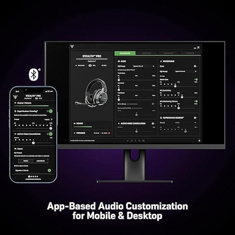 The Turtle Beach Stealth Pro Multiplatform Wireless Gaming Headset brings the best premium features to your gaming multiverse for Xbox Series X|S, Xbox One, PS5, PS4, Windows PCs, Mac, Steam Deck, and Bluetooth-equipped mobile devices. An optimized audio cavity houses powerful, 50mm Nanoclear drivers, each hand-selected at the factory to ensure perfectly matched frequencies in both the left and right speakers. Plus, a powerful onboard DAC, an optimized audio cavity, and active software tuning produce a highly detailed soundstage for captivating audio, including Windows Sonic, Sony 3D Audio for PS5, Dolby Atmos, and DTS Headphone X.