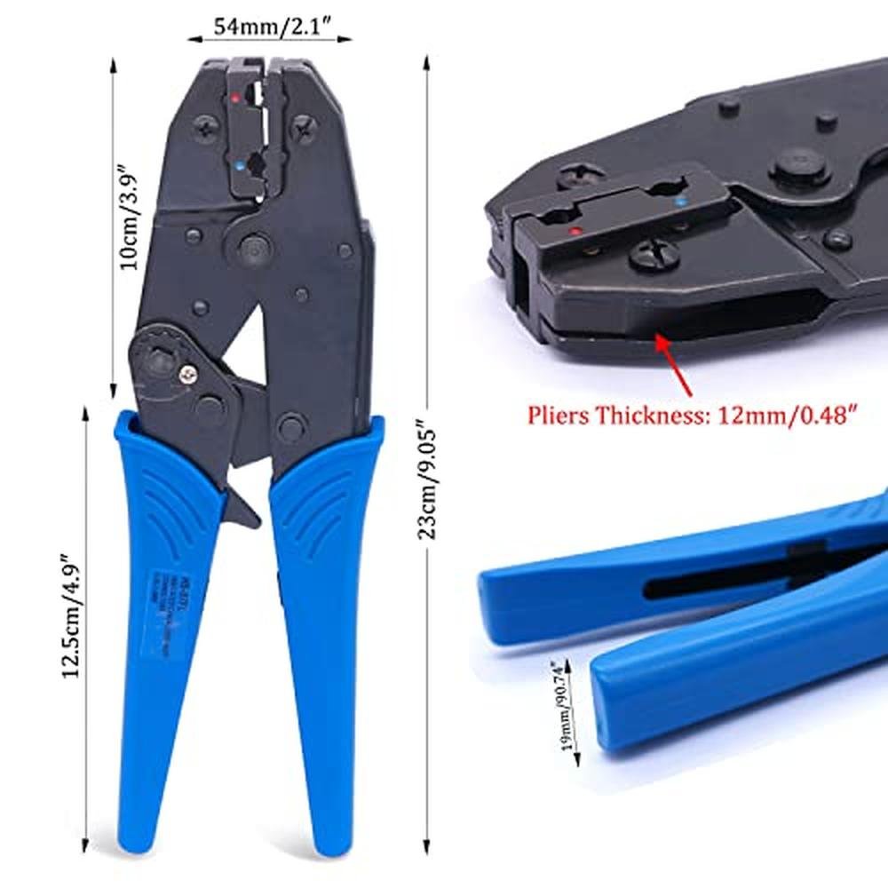 - Ratcheting Wire Crimper Design: Made of high-carbon steel which is treated with black oxidation,rust and corrosion resistance and insulated rubber, and ratcheting mechanism design help you take less strength to make a good crimp.