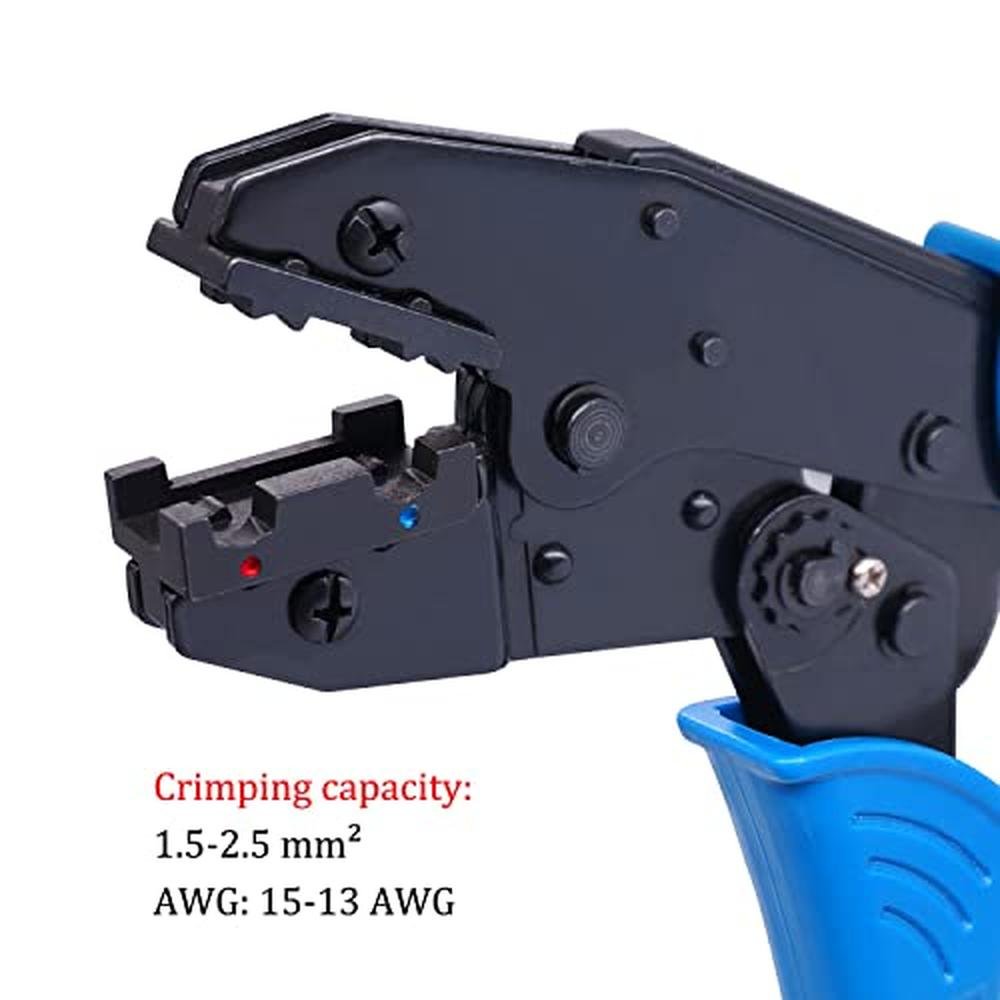 - This hand crimper has efficient ratcheting mechanism. Crimping is accurate and never damage the terminal,crimping is in one step. The crimping tool is suitable for nylon flag connector terminals.