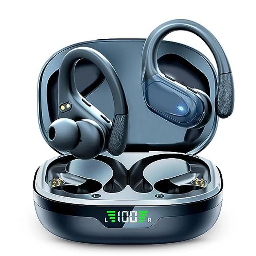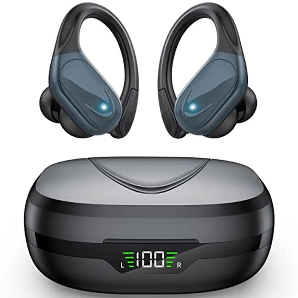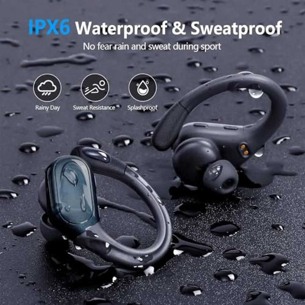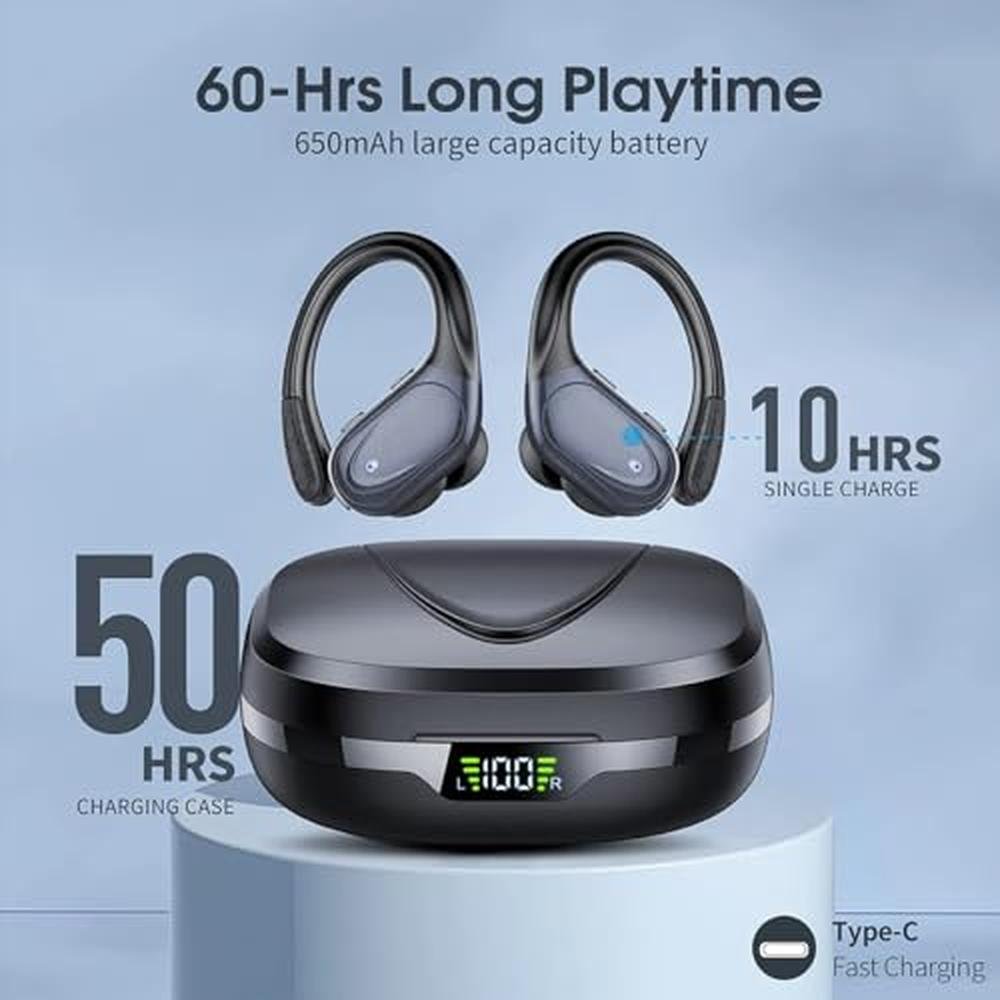 TWS BX 17 Bluetooth 5.3 Wireless Earbuds 48hour Playtime HiFi Headphones Over-Ear Headset Sports IPX7 Waterproof Built-in Microphone Digital Power LED Display Powerful Stereo Bass Earphone (Black)
