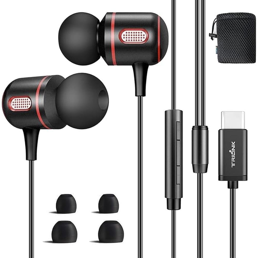 USB C Headphones, USB Type-C Wired Earphones in-Ear Earbuds Headset with Mic and Volume Control Compatible with iPhone 15 Pro Max Plus, iPad Pro, Samsung Galaxy, Google Pixel Xiaomi Huawei Oneplus