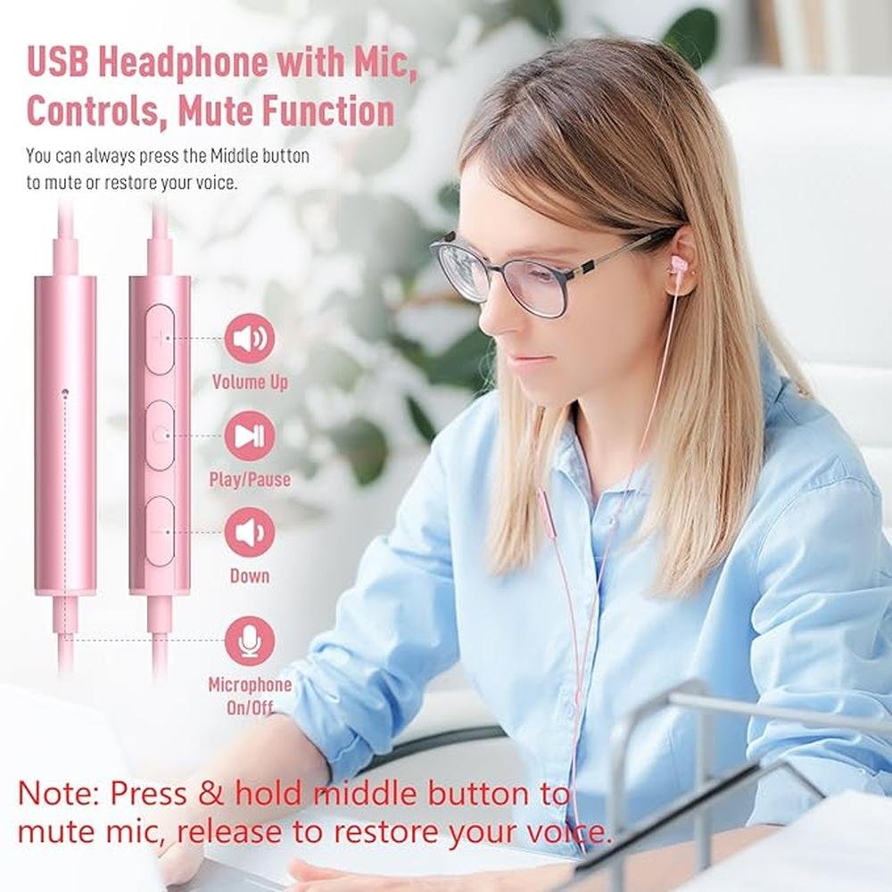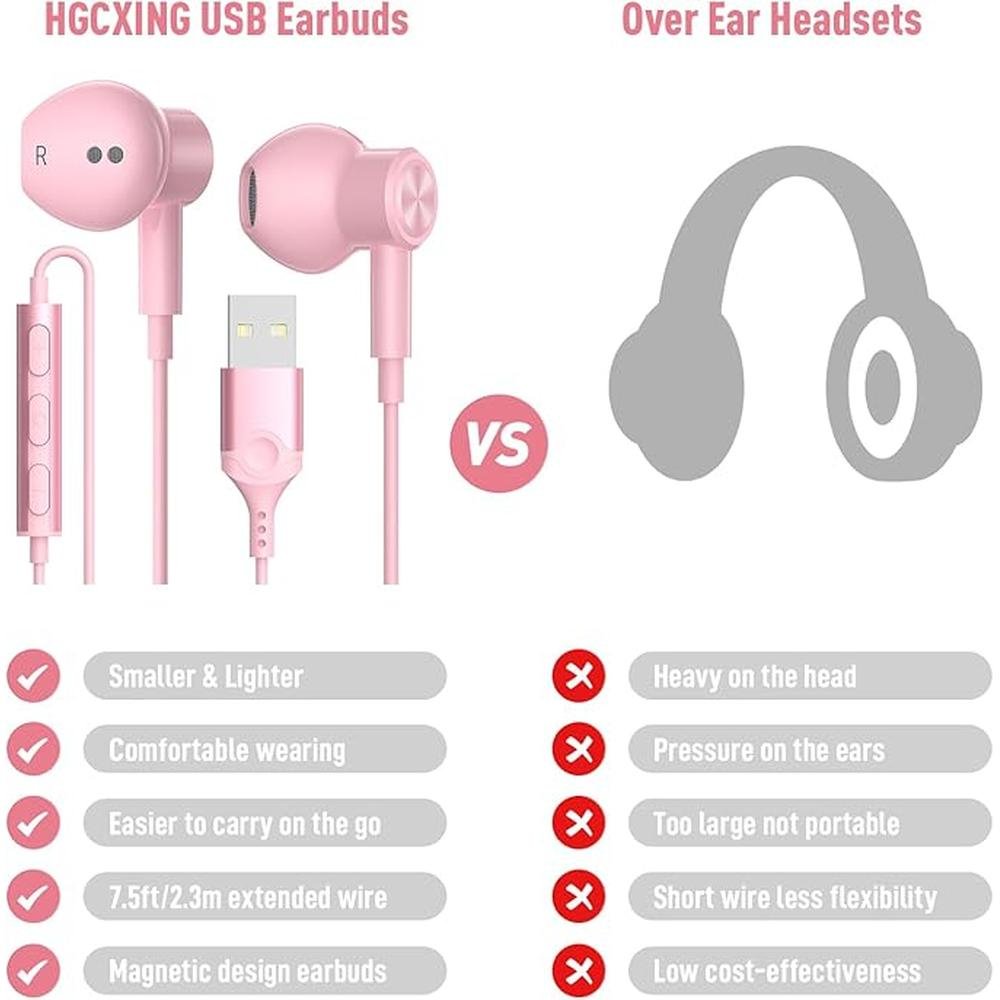USB Headphones for PC Laptop Magnetic 7.5ft Wired Earbuds Computer Headset with MICR Control Mute Noise Isolate Cord in Ear Gaming Earphone for MacBook Pro Office Work School Zoom