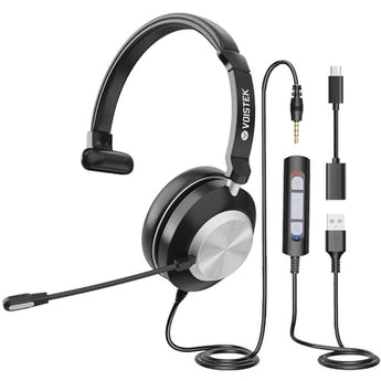 Voistek USB Headset with Microphone for PC/Laptop, Computer Headphones (One Ear) Wired Work Headset with Noise Cancelling Mic & Volume Controls for Call Center,Office,Team Meetings,Zoom