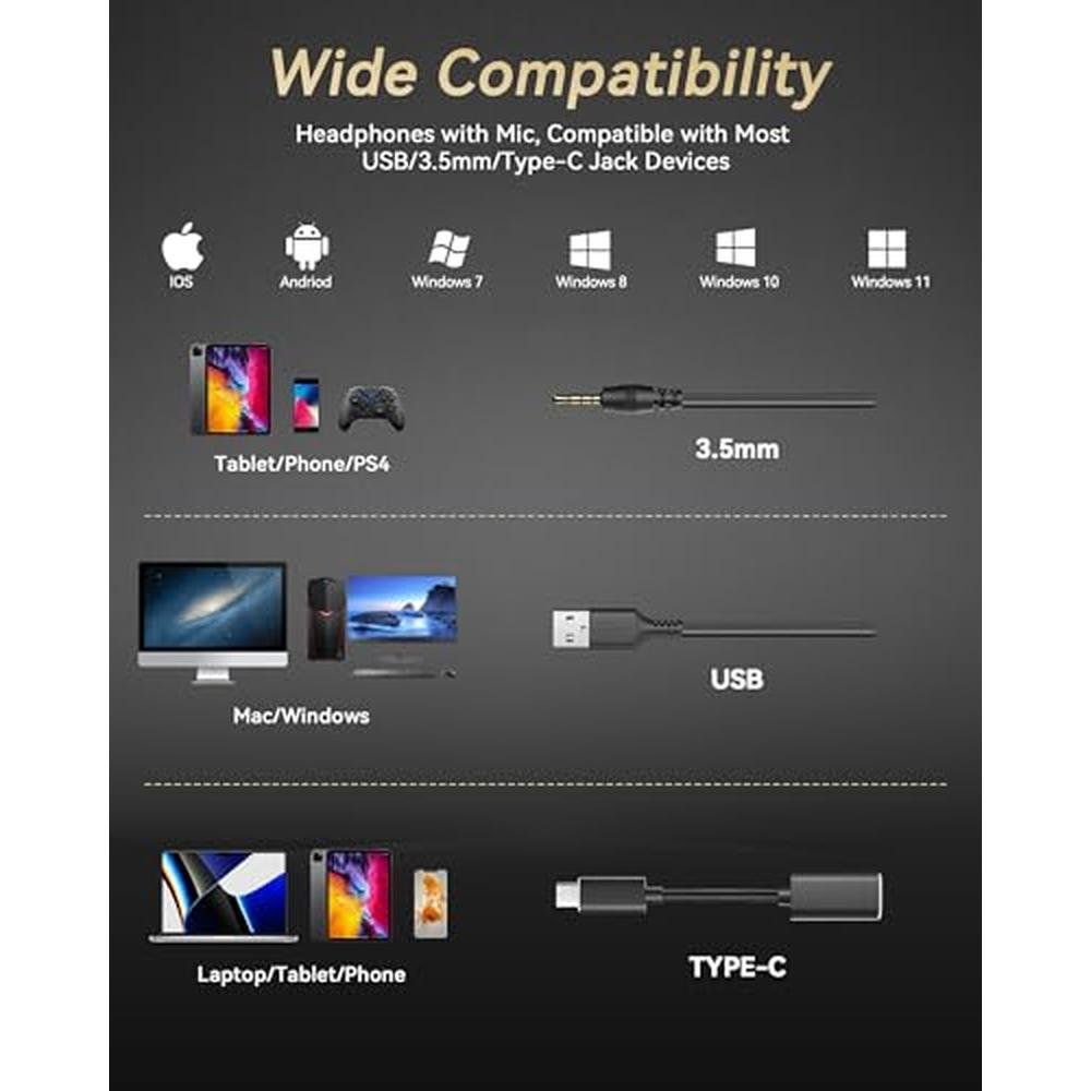 Your Solution: Struggling with unclear calls? Our noise-canceling mic makes sure your voice is always heard. Need a comfy headset for long calls? Memory foam ear cups and a lightweight design keep you comfortable all day. Looking for easy setup and reliable sound? Plug it in and goperfect for work or play! Why Youll Love It: Noise-Canceling Mic: Block out distractions and focus on what matters. Comfy Fit: Wear it for hours without discomfort. Versatile & Easy: Works with all your devices and is super easy to set up. Great Sound: Clear audio for meetings, calls, and entertainment. Durable: Tough and reliable for everyday use.
