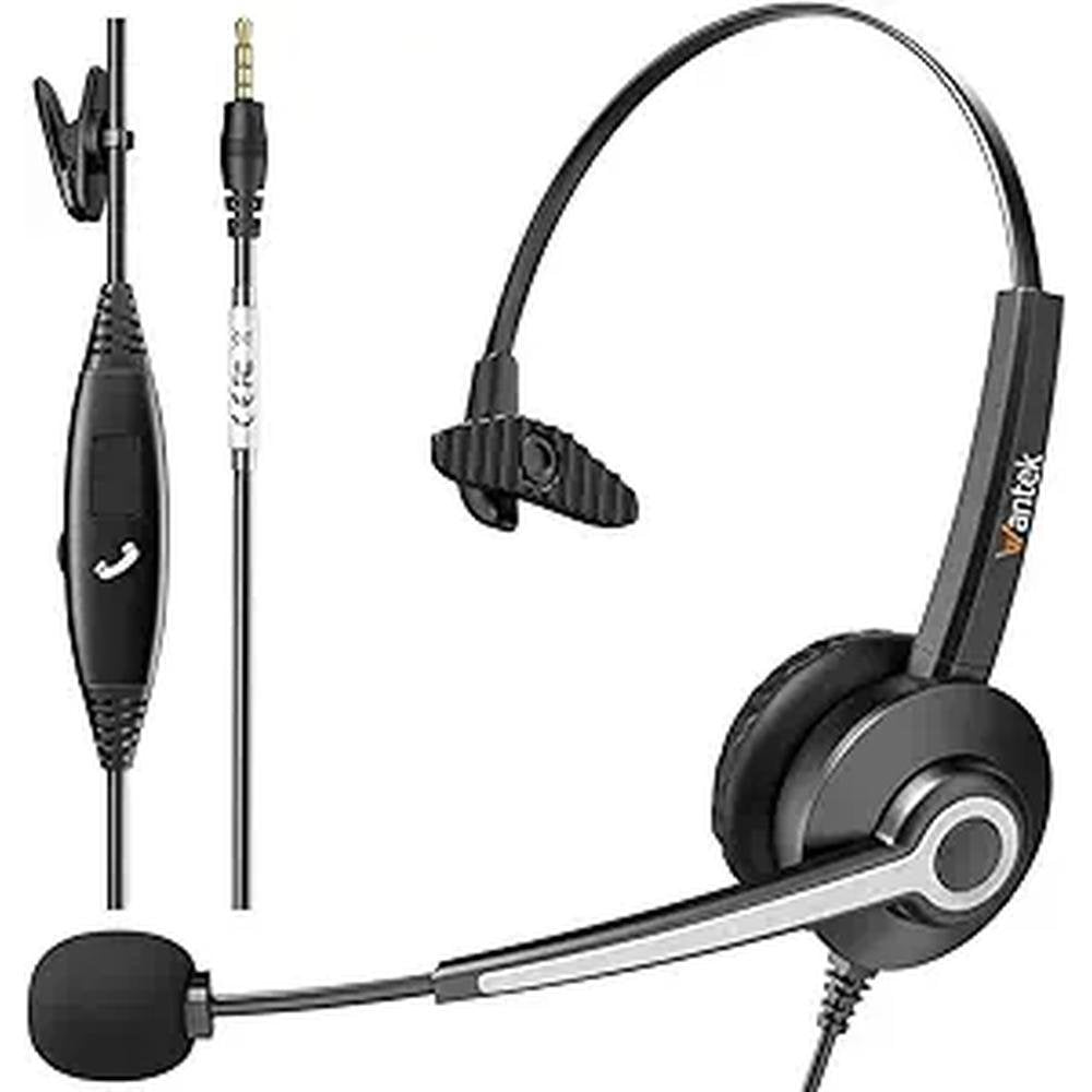 Wantek Headset with Microphone for PC Wired Headphones 3.5mm Headsets with Noise-Cancelling Microphone for Laptop - Computer Headphones with Mic in-line Control for Home