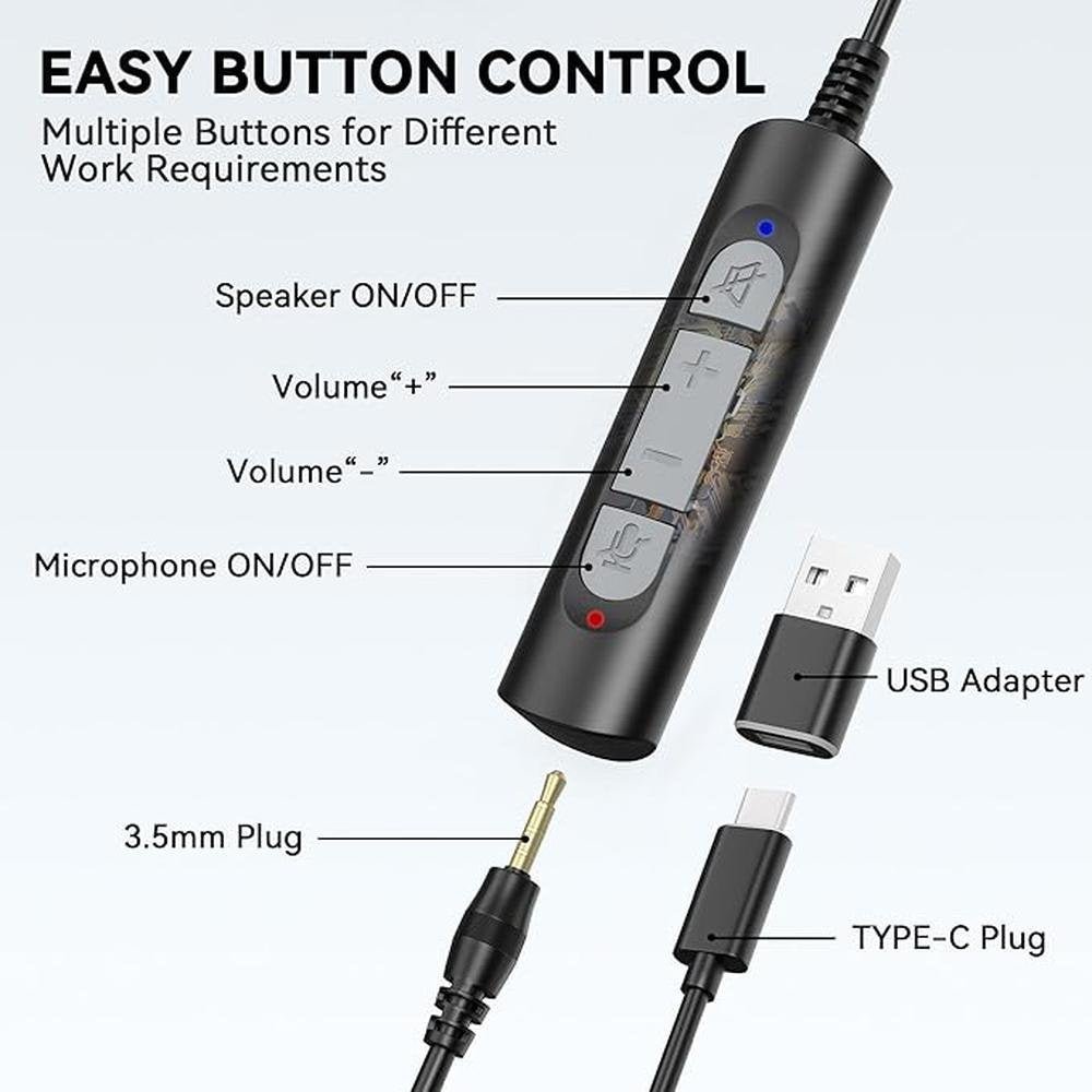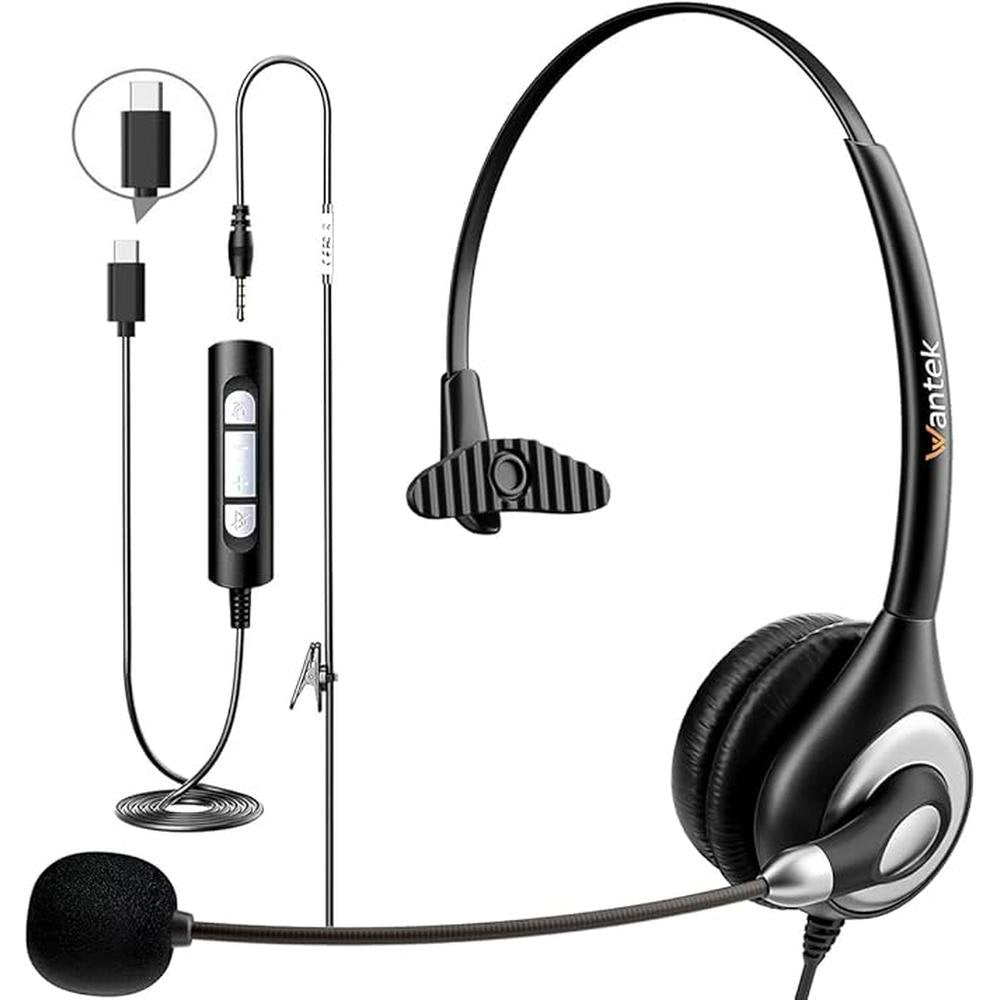 Wantek Headset with Microphone for PC Wired Headphones - USB C 3.5mm Headsets with Noise-Cancelling Microphone for Laptop