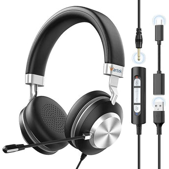 Wantek USB Headset with Microphone for PC,Laptop,Computer Headset with Noise Cancelling & Audio Controls,Wired Headset for Call Center,Work,Ofiice,Zoom,Binaural
